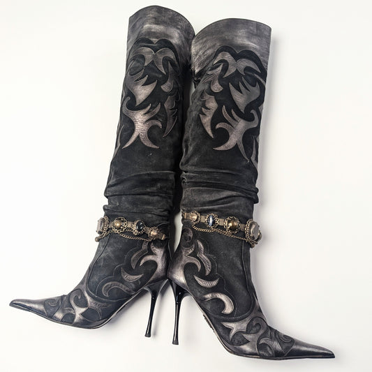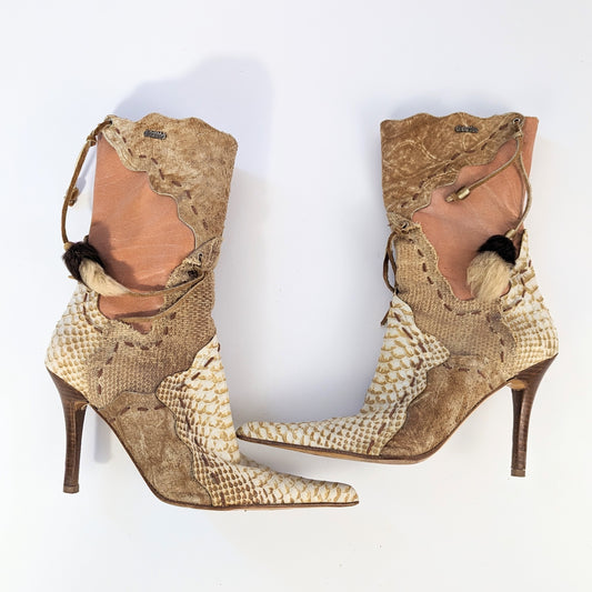 Bottes El Dantes en fourrure et plumes - EU37|UK4|US6