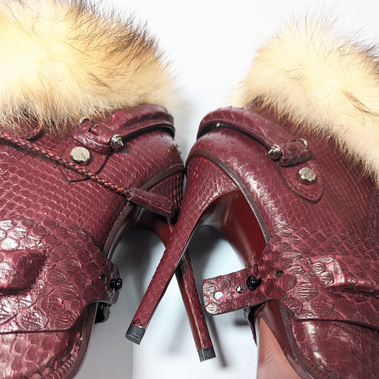 Roberto Cavalli burgundy python ankle boots - EU39|UK6|US8