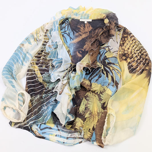 Roberto Cavalli blouse in silk decorated with a lion's head print - S/S 2002 - S/M