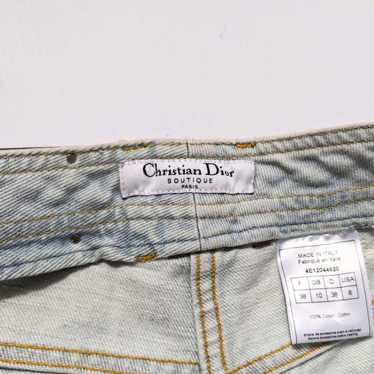 Dior jeans by Galliano decorated with a silver plaque signed “Dior” - S/M