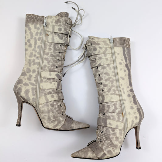 Dior by Galliano gray snake leather lace-up boots -EU39|6UK|8US