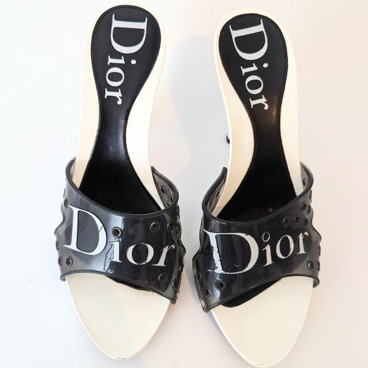 Dior White and Black Jelly Mules by Galliano - EU39|6UK|8US