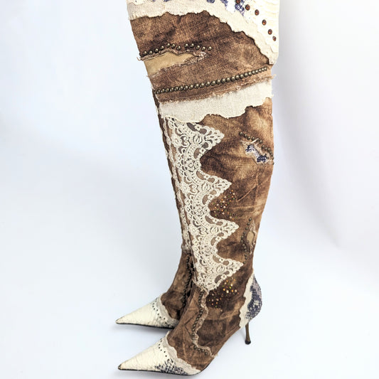El Dantes brown thigh high boots decorated with pearl and lace - EU37|UK4|US6