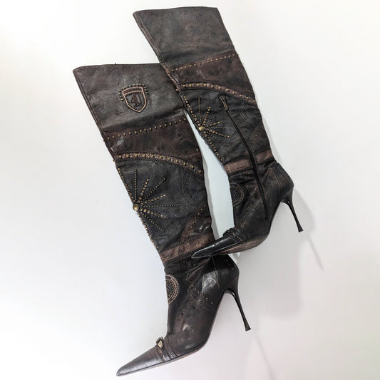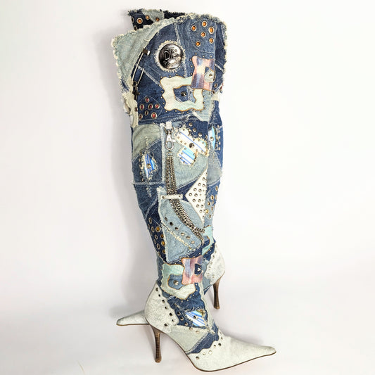 El Dantes patchwork denim over-the-knee boots - EU36,5|UK3,5|US5,5