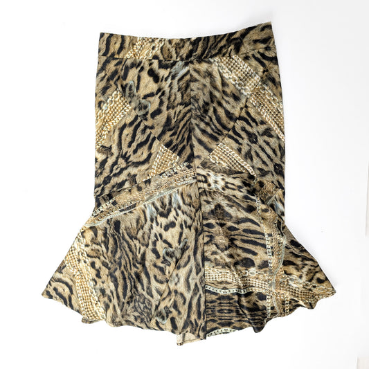 Roberto Cavalli Animal Print Silk Skirt - L