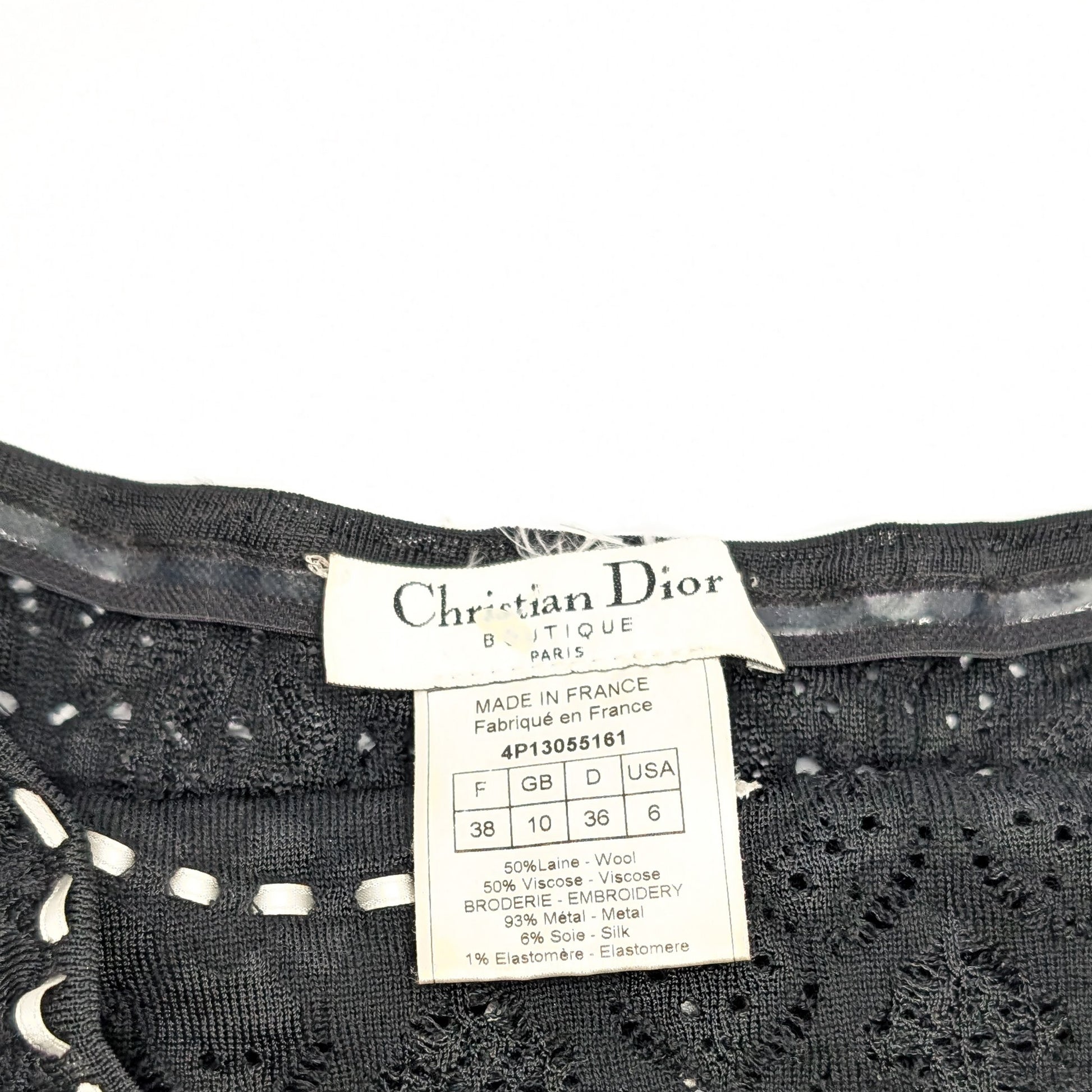 Item: Black knit headband with contrasting edges featuring an embroidered "Dior" inscription and decorated with sequins.