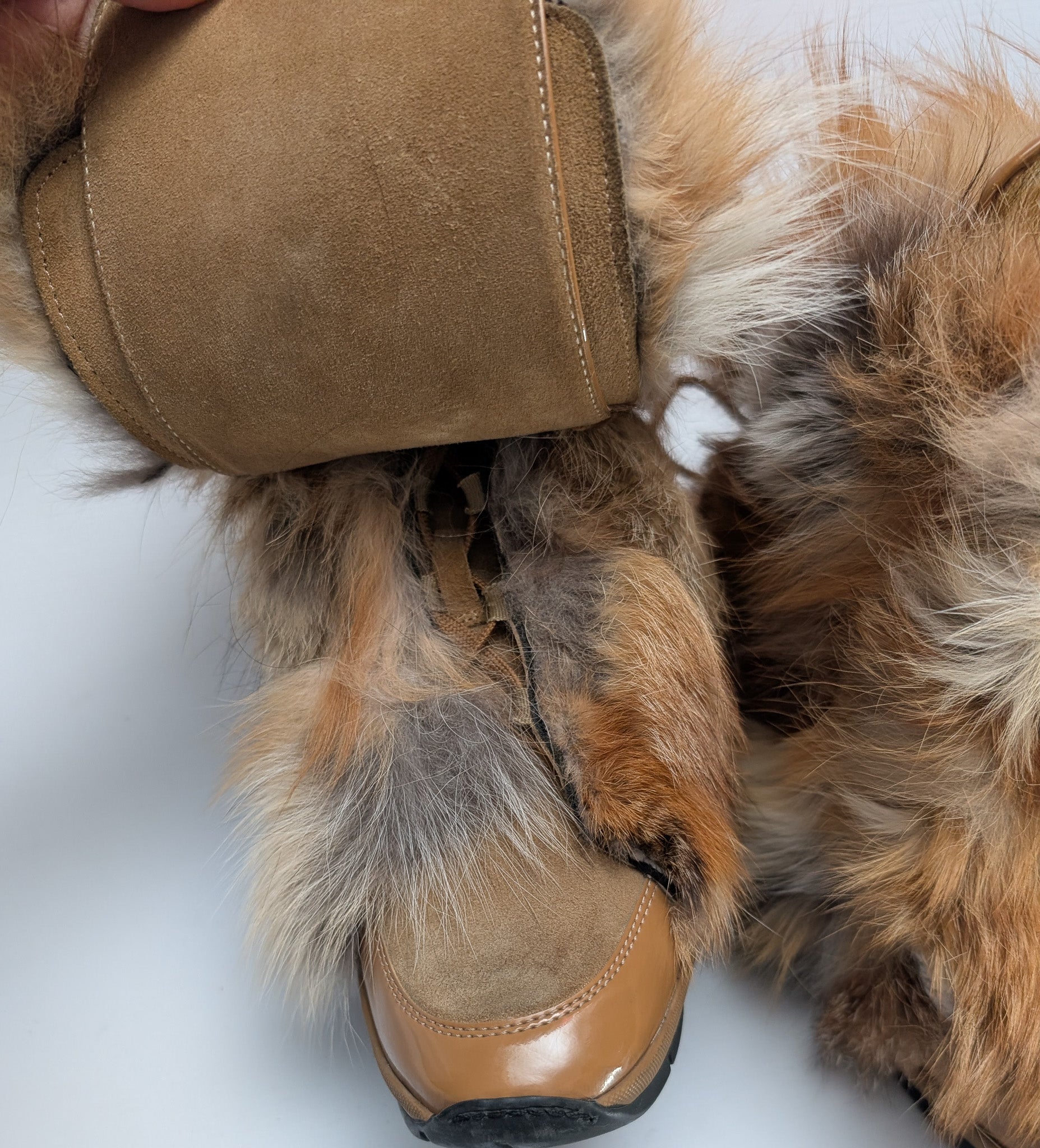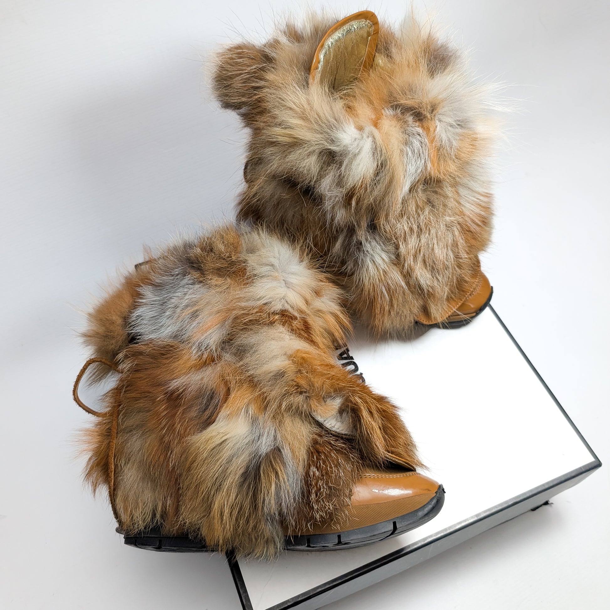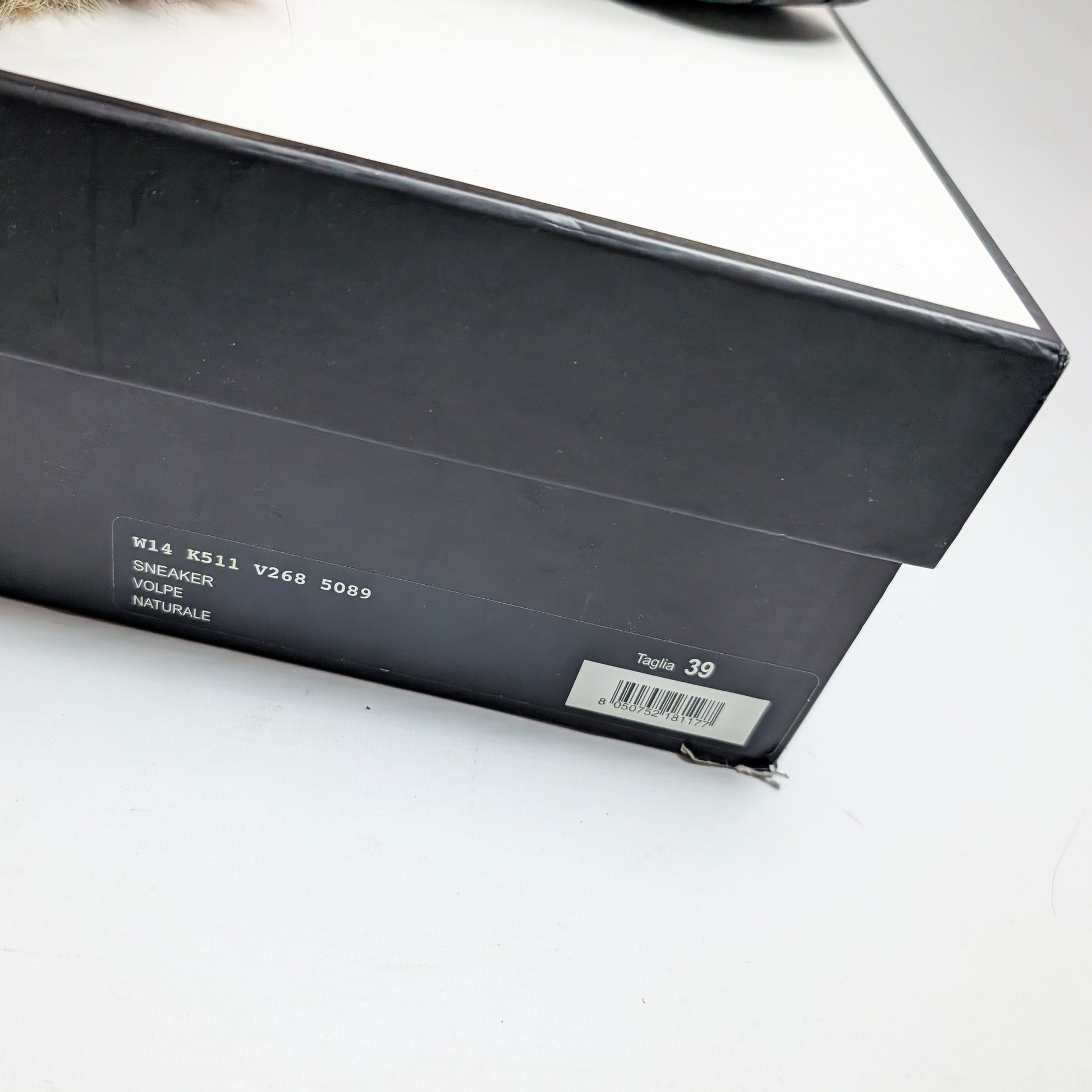 Item: Dsquared2 wedge sneakers adorned with real fur.