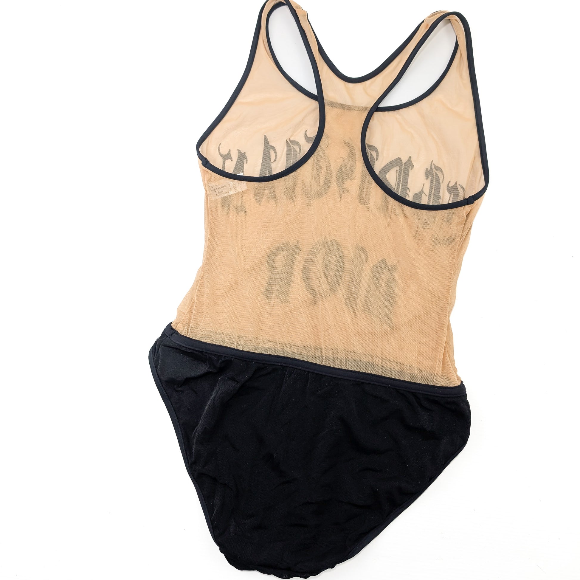 Item: Body Dior par Galliano en mesh ornée d'une Inscription style gothique "Christian".