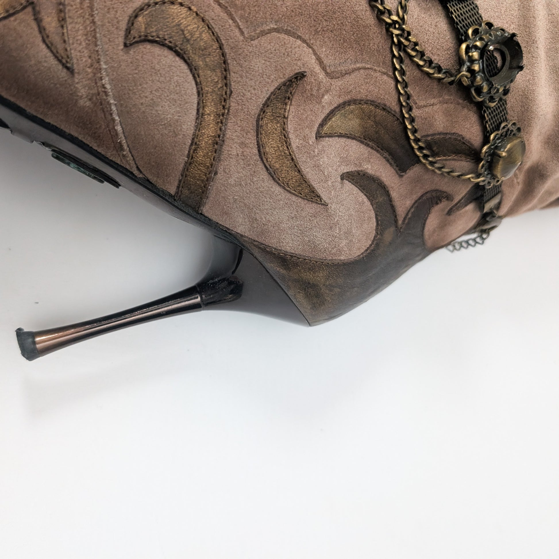 Item: El Dantes thigh-high boots in beige suede adorned with jewels.