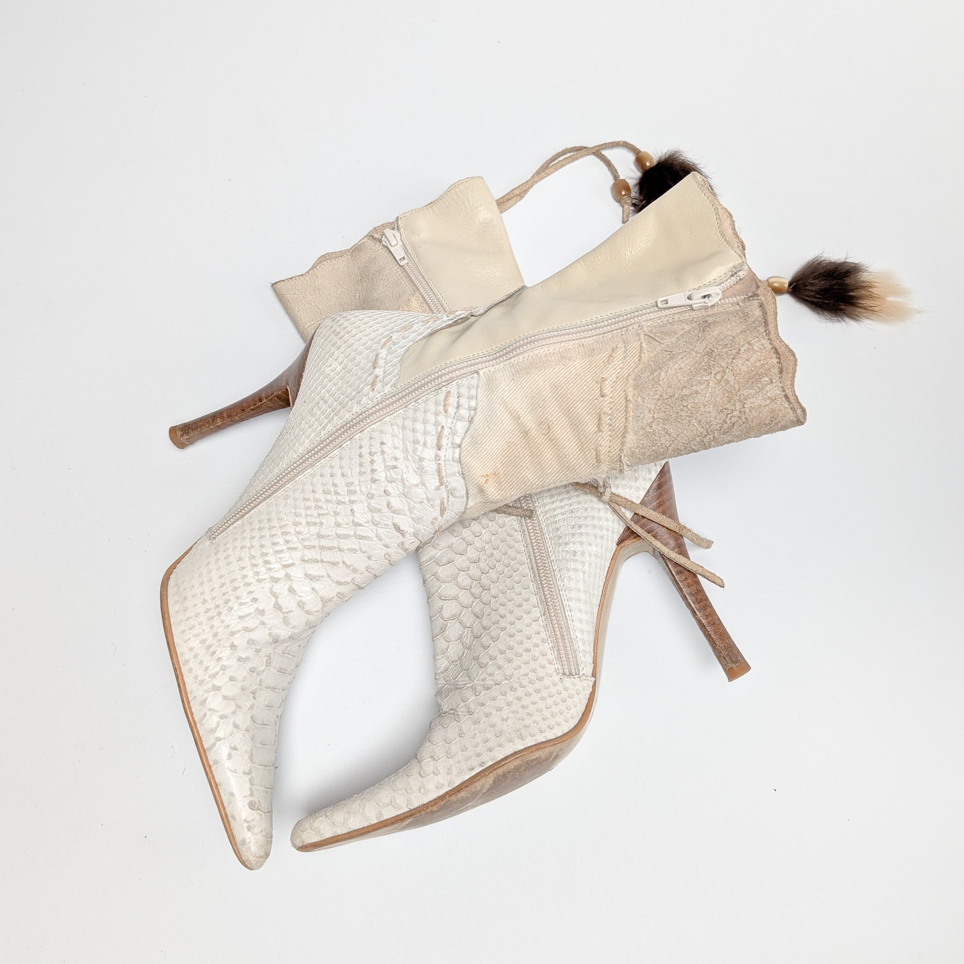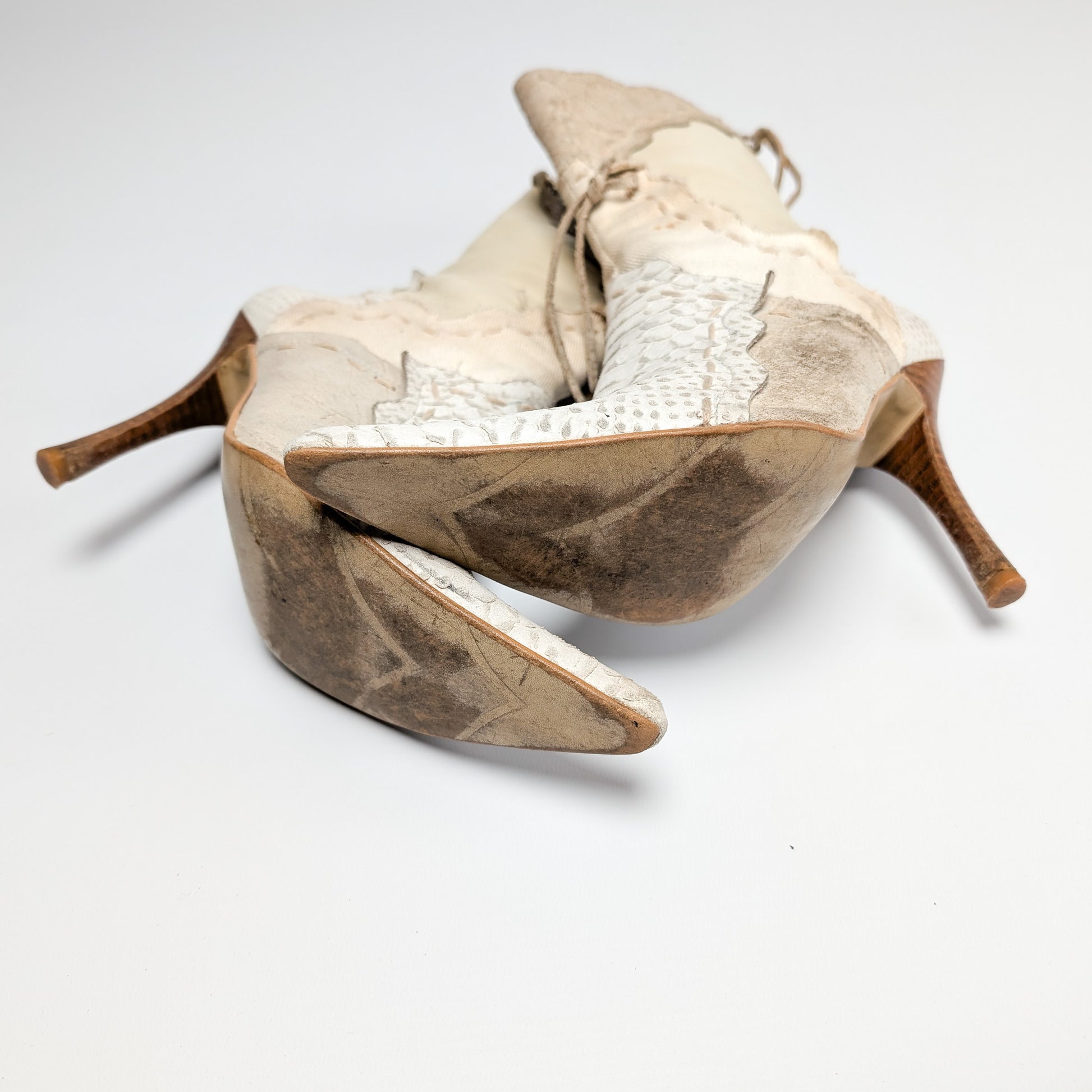 Item: Beige El Dantes style ankle boots in patchwork suede and reptile-effect leather, snake.