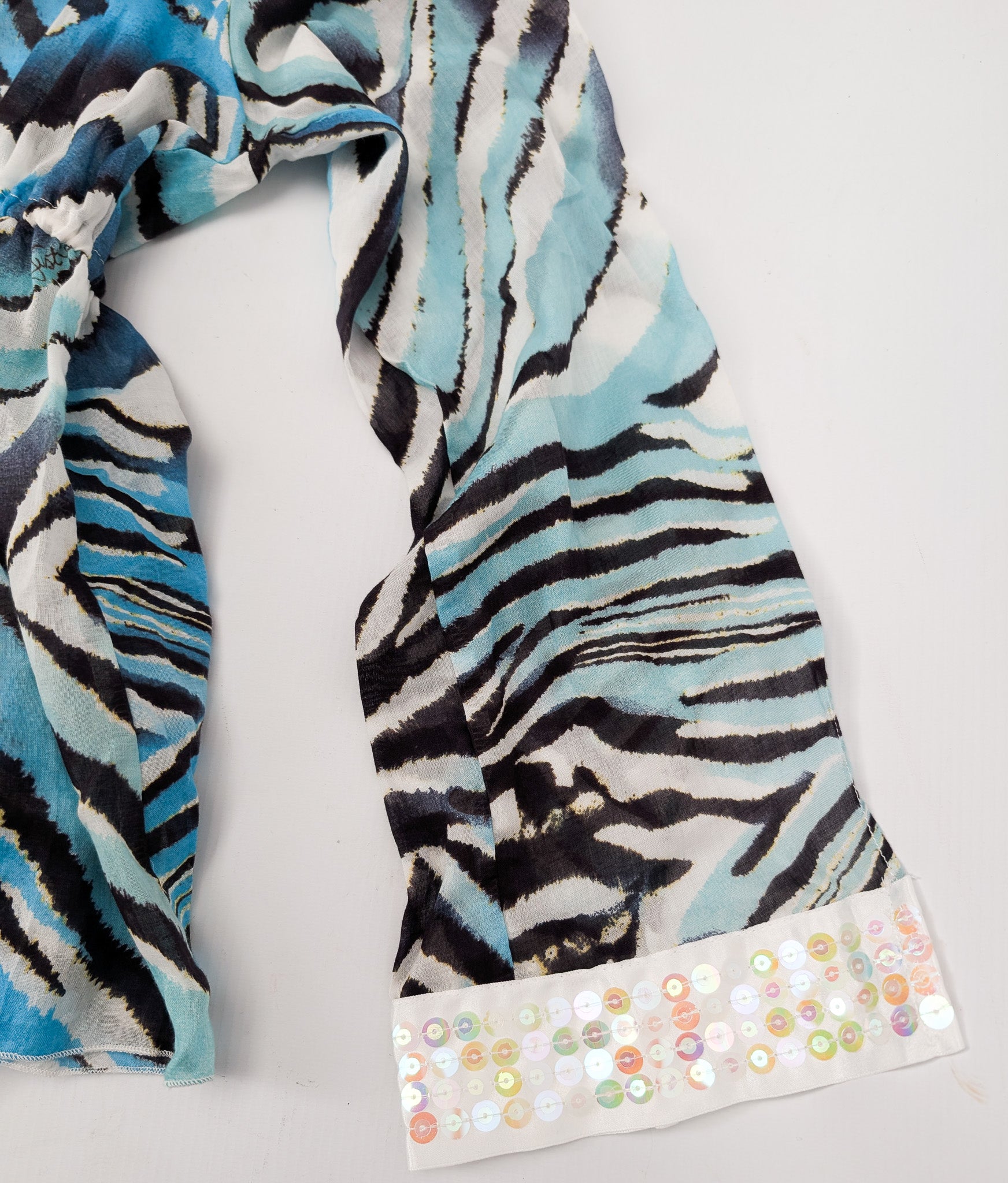 Item: Top adorned with rhinestones in a khaki zebra pattern.