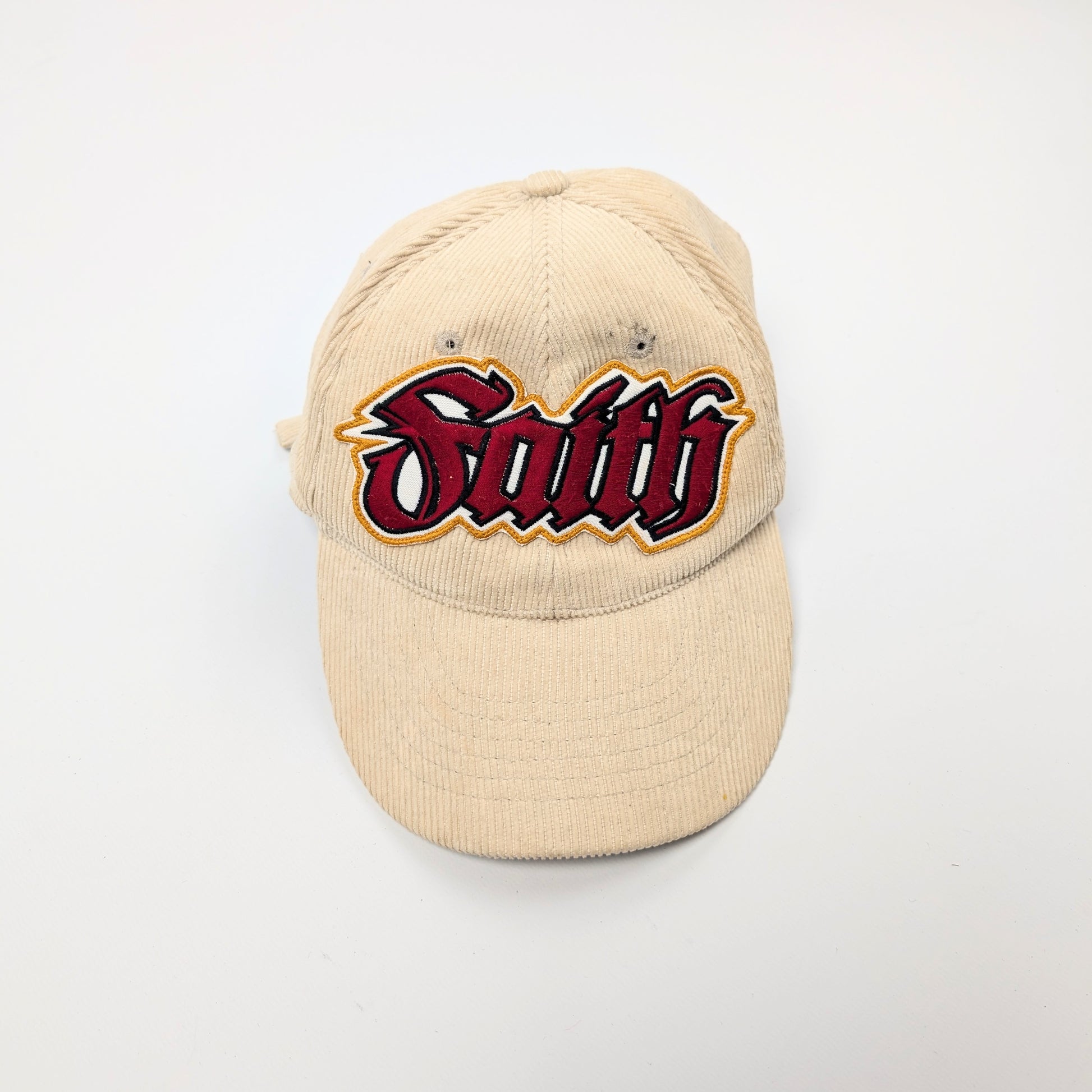 Item: Beige dsquared2 cap in velvet with an embroided inscription "Faith".