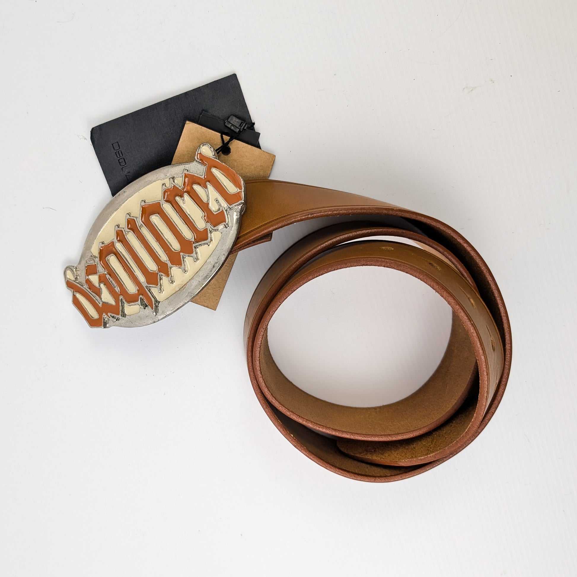 Item : Beige Dsquared2 leather belt with large buckle decorated with "Dsquared2" inscription