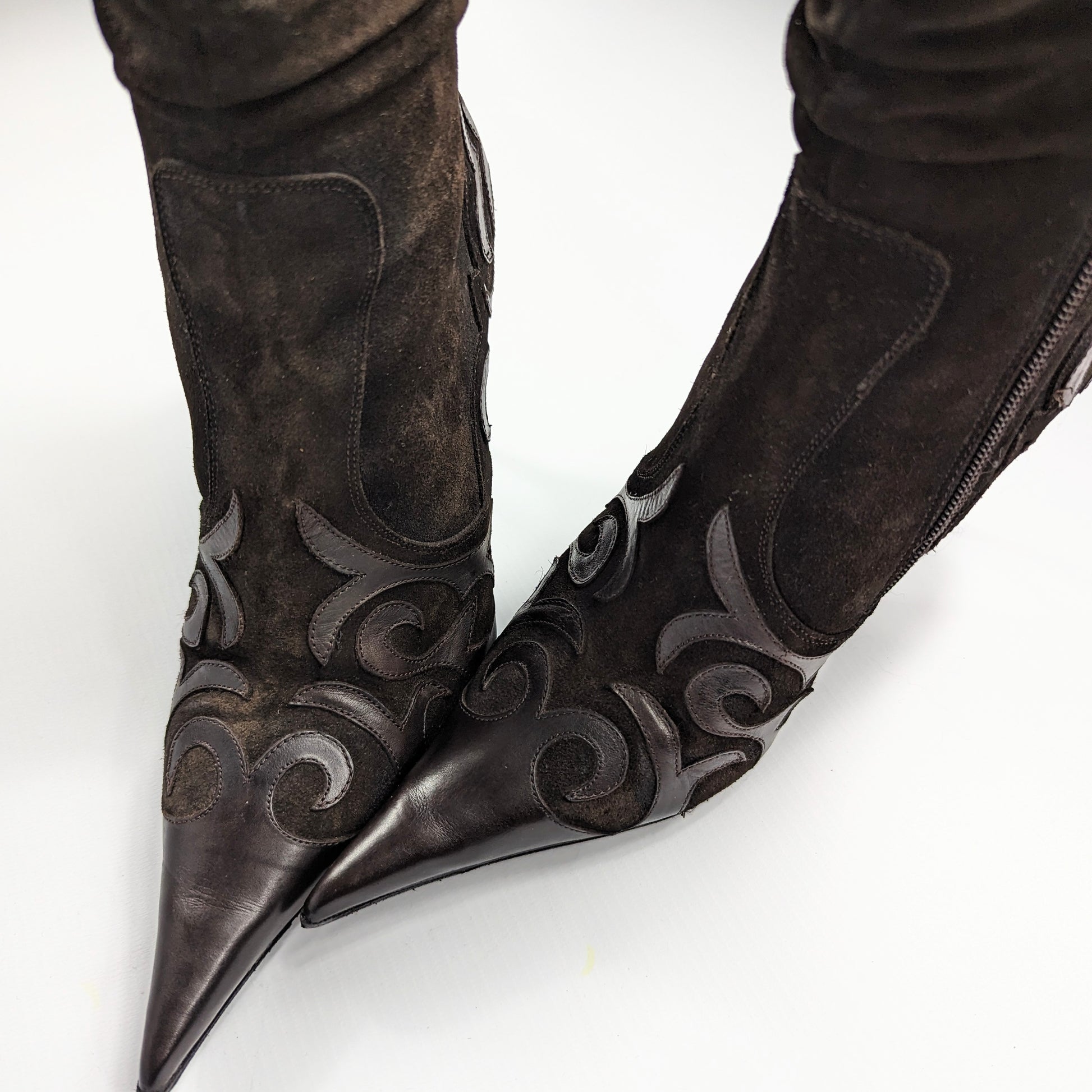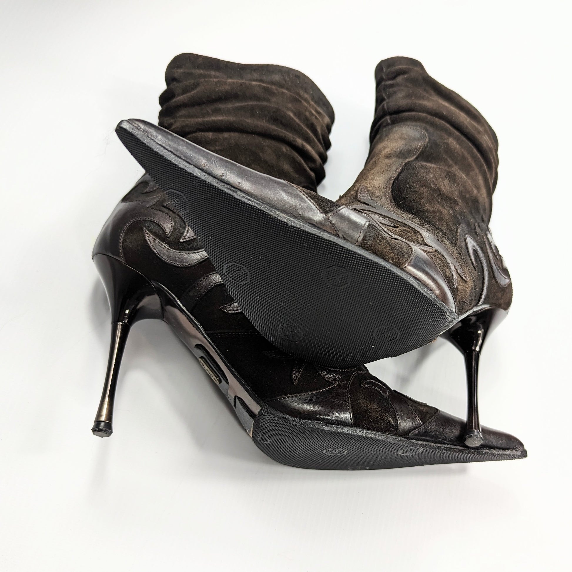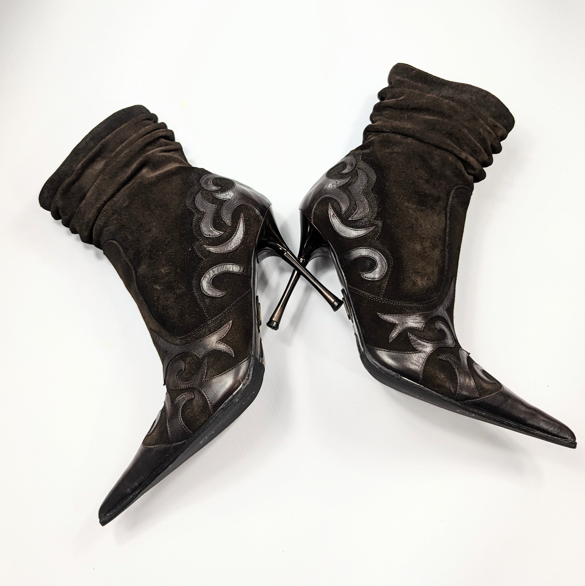 Item: El Dantes boots in suede with leather inserts.