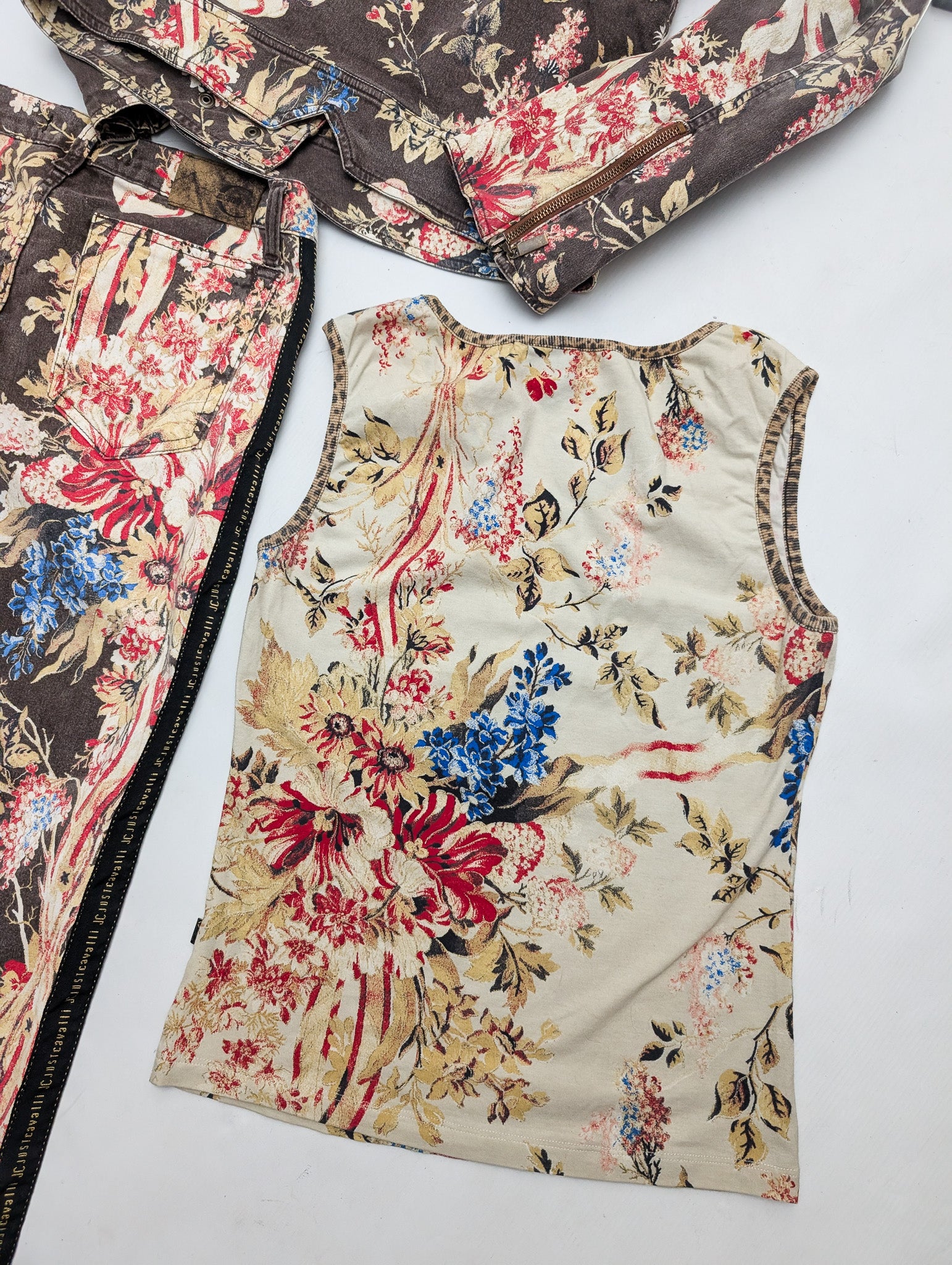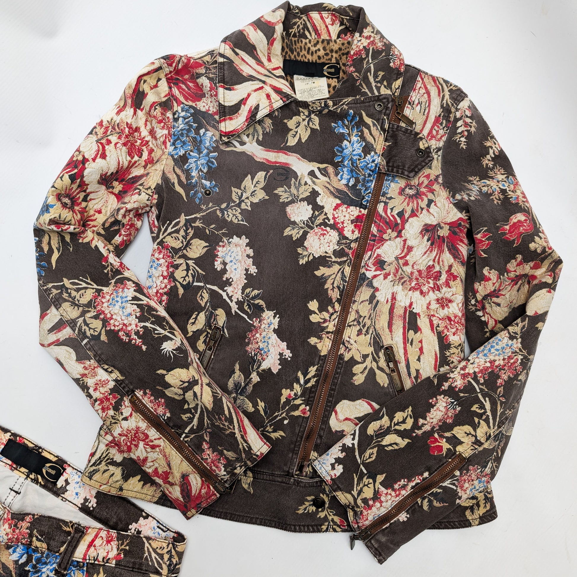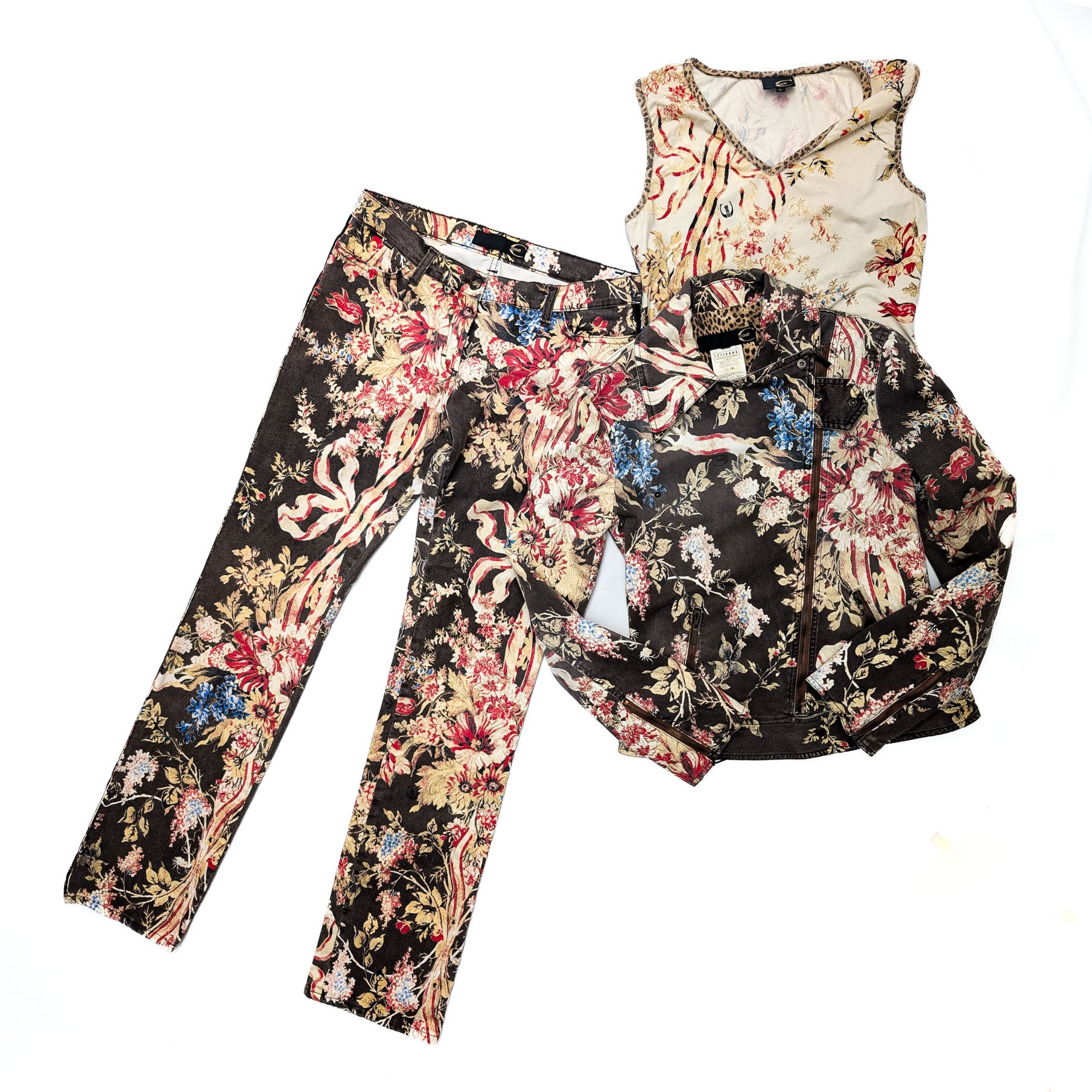 Item: Set of long straight trousers, perfecto style jacket and top.