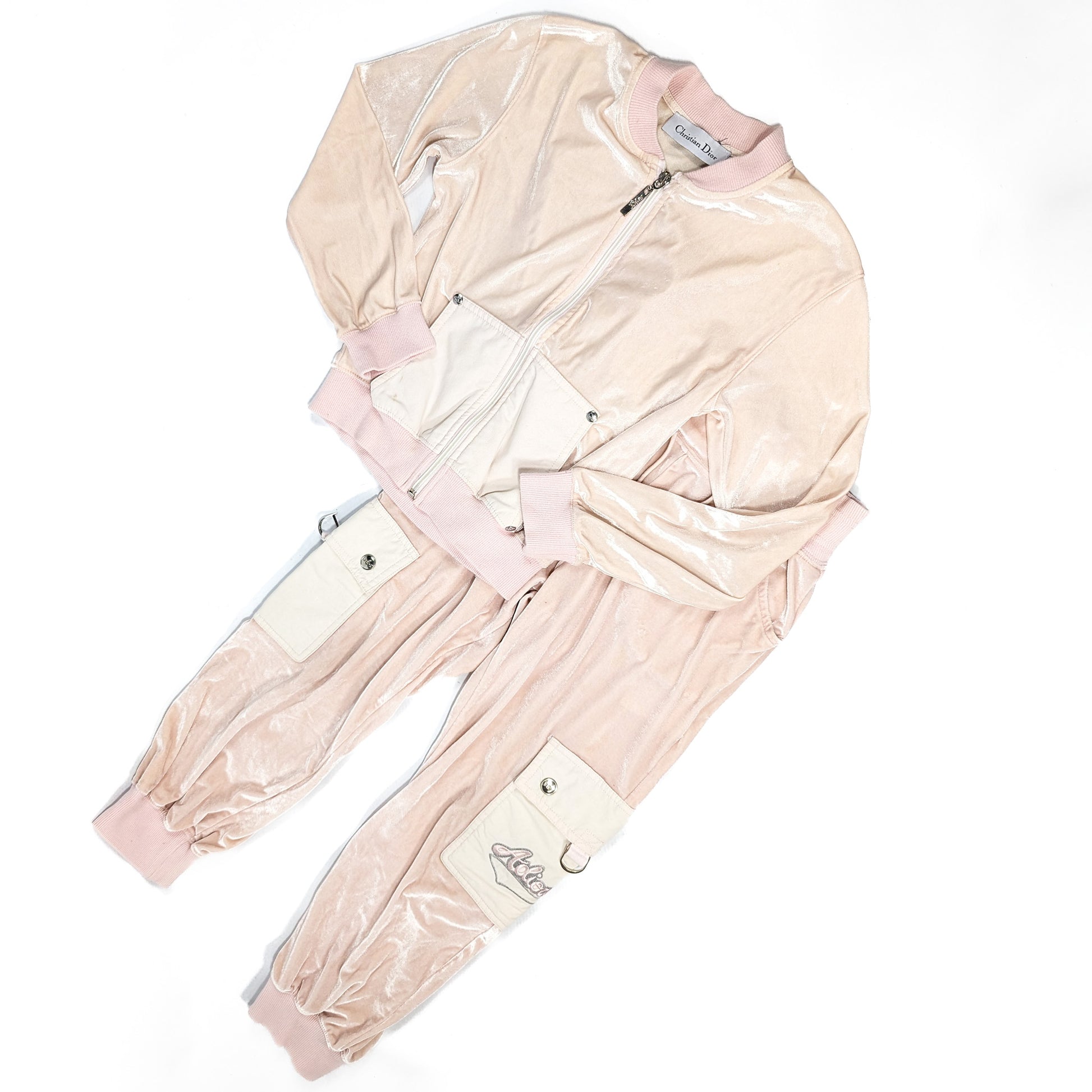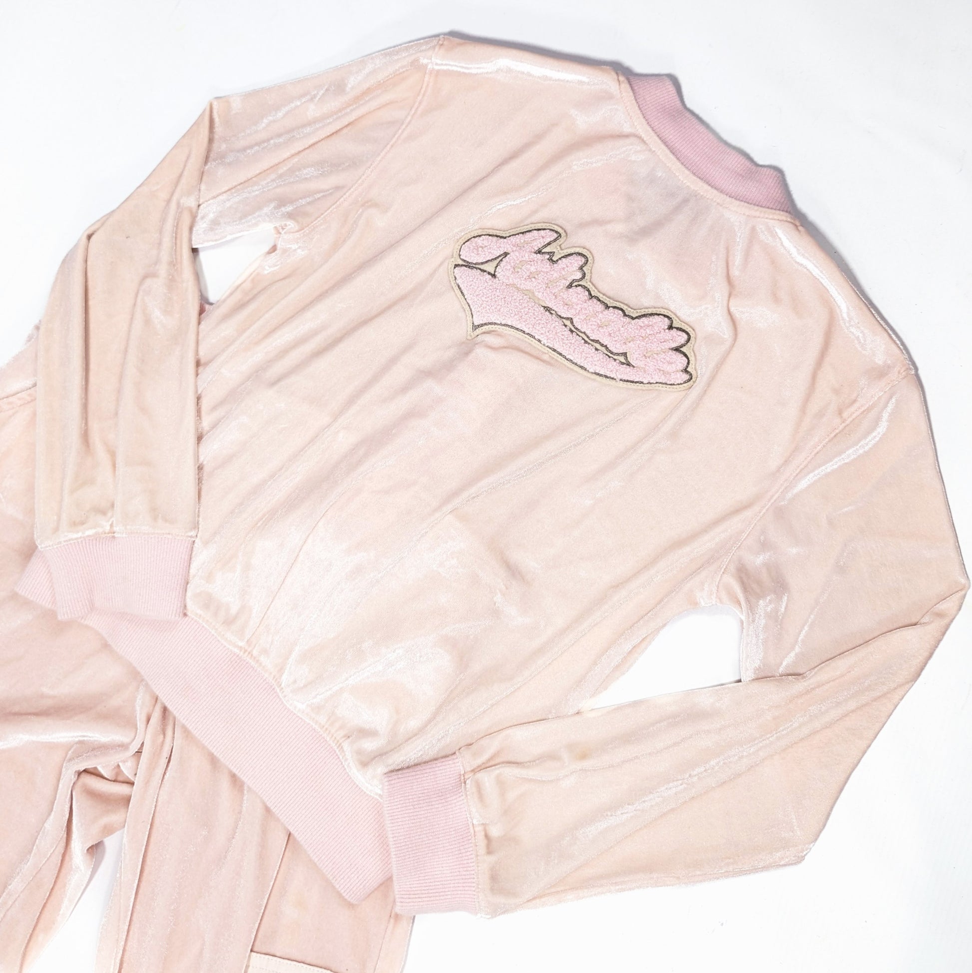 Item: "Adiorable" set comprising a light pink velvet jacket and jogger.