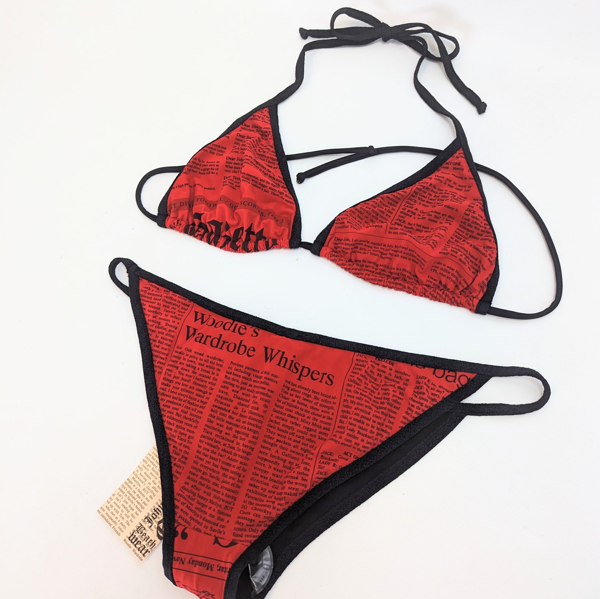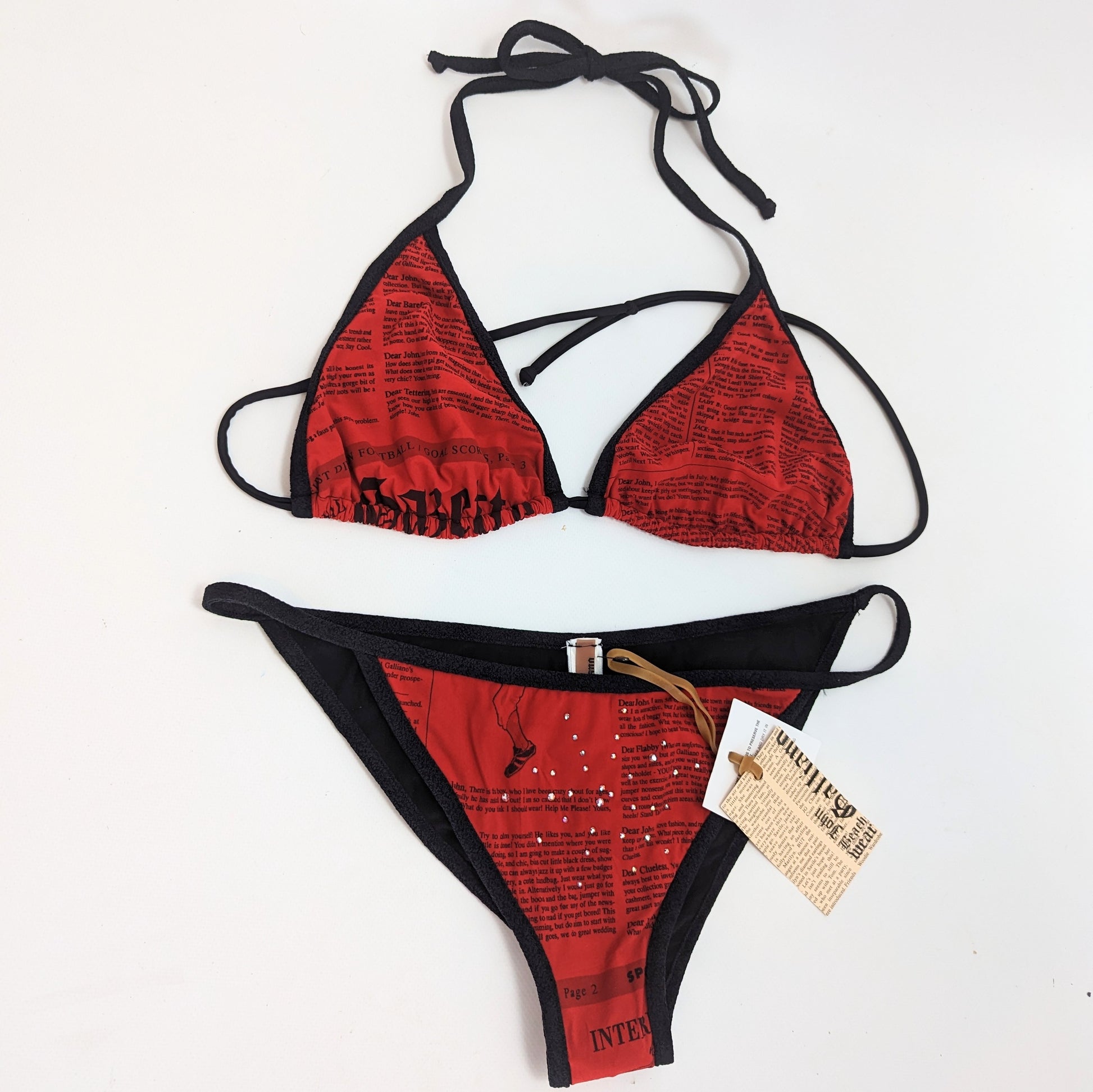Galliano red and black newspaper print bikini swimsuit - M/L
