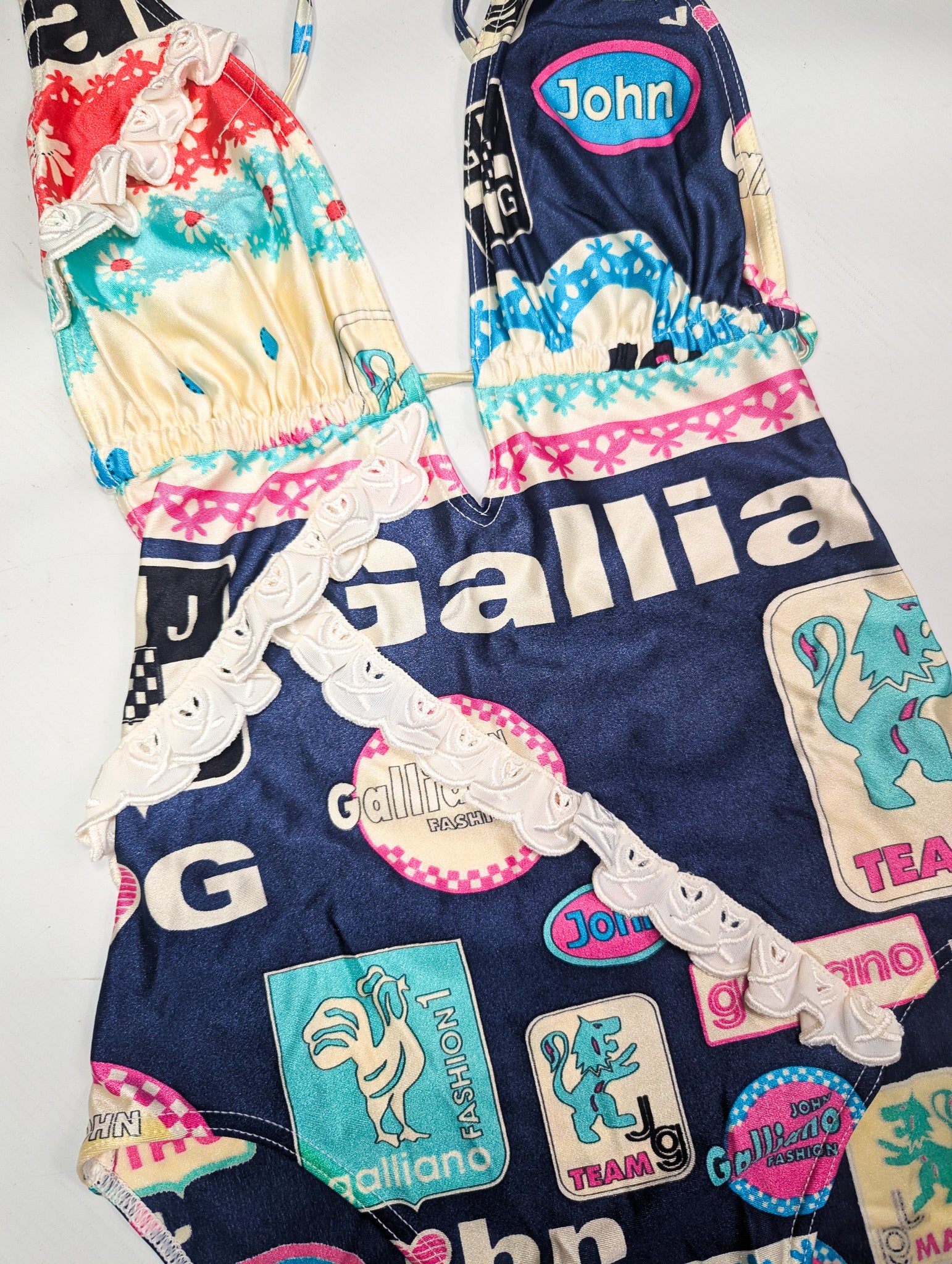 Item: Multicolored patterned one-piece swimsuit with lace trim