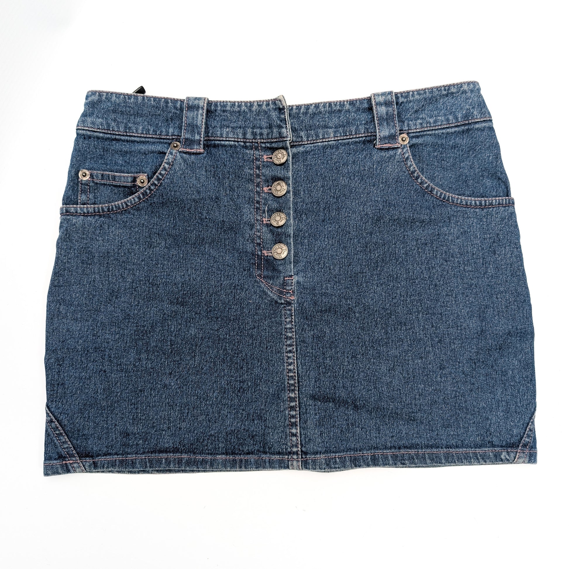Dior by Galliano denim mini skirt with pink topstitching - M