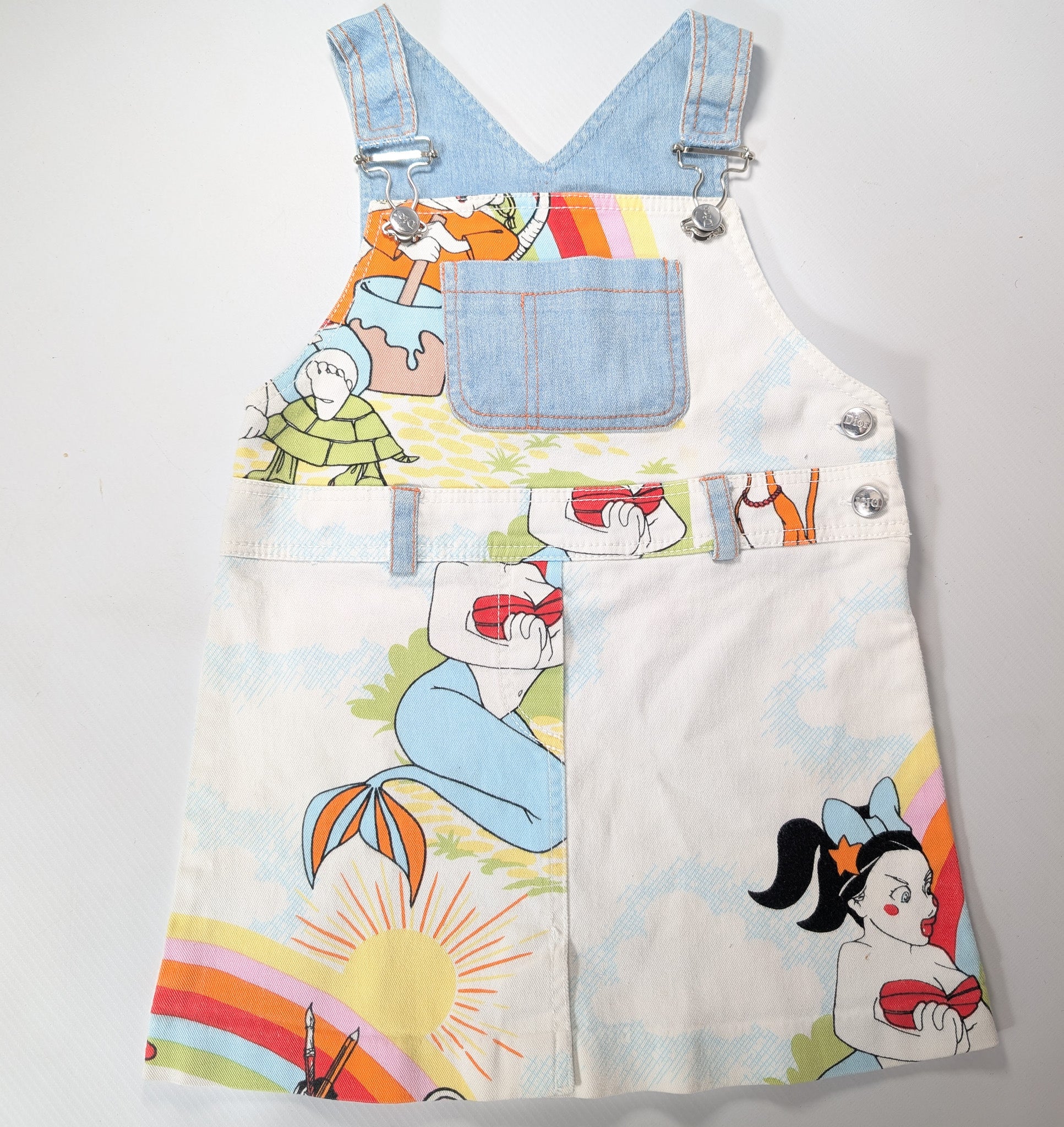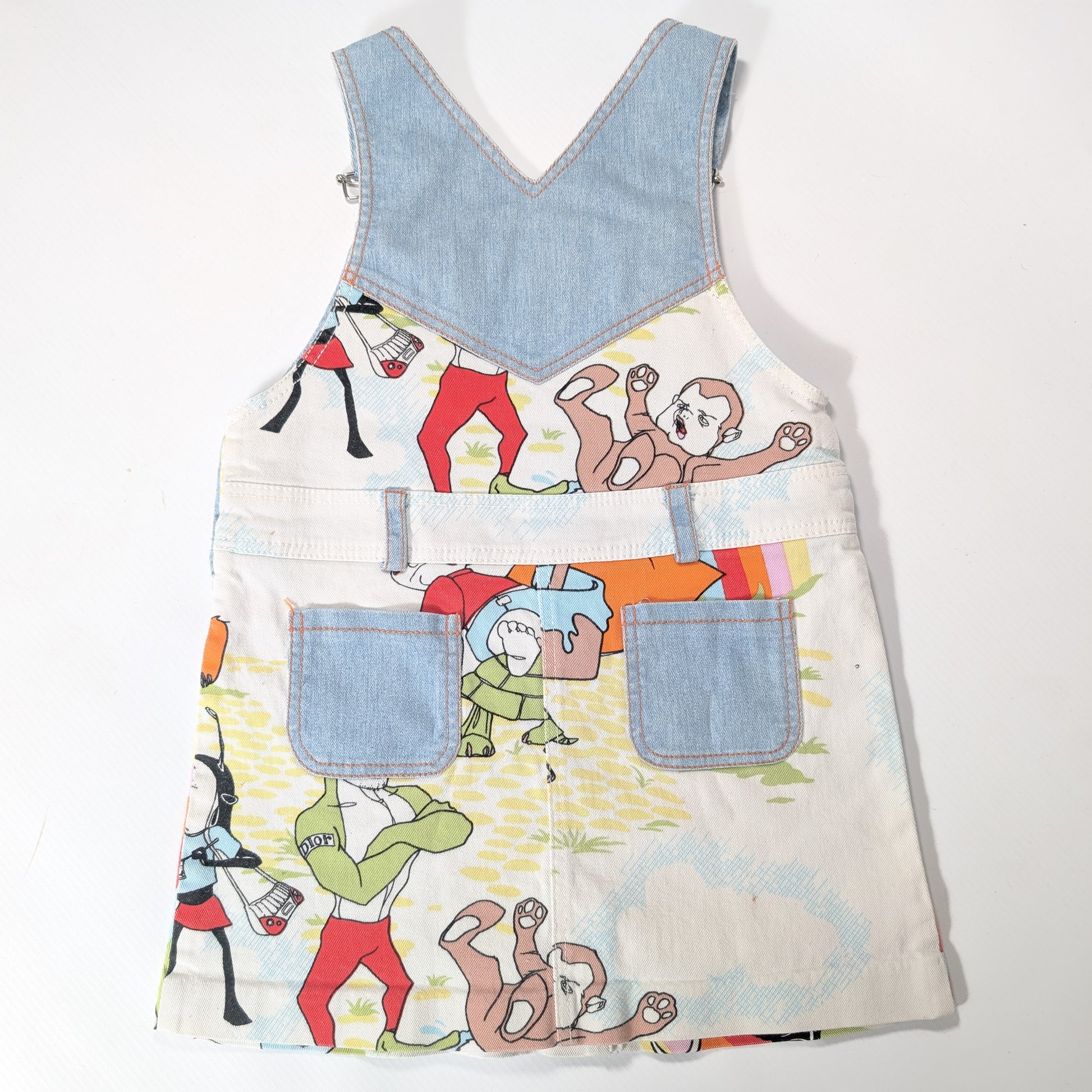 Item: Slightly stretchy denim dress with cartoon print and "Dior" lettering.