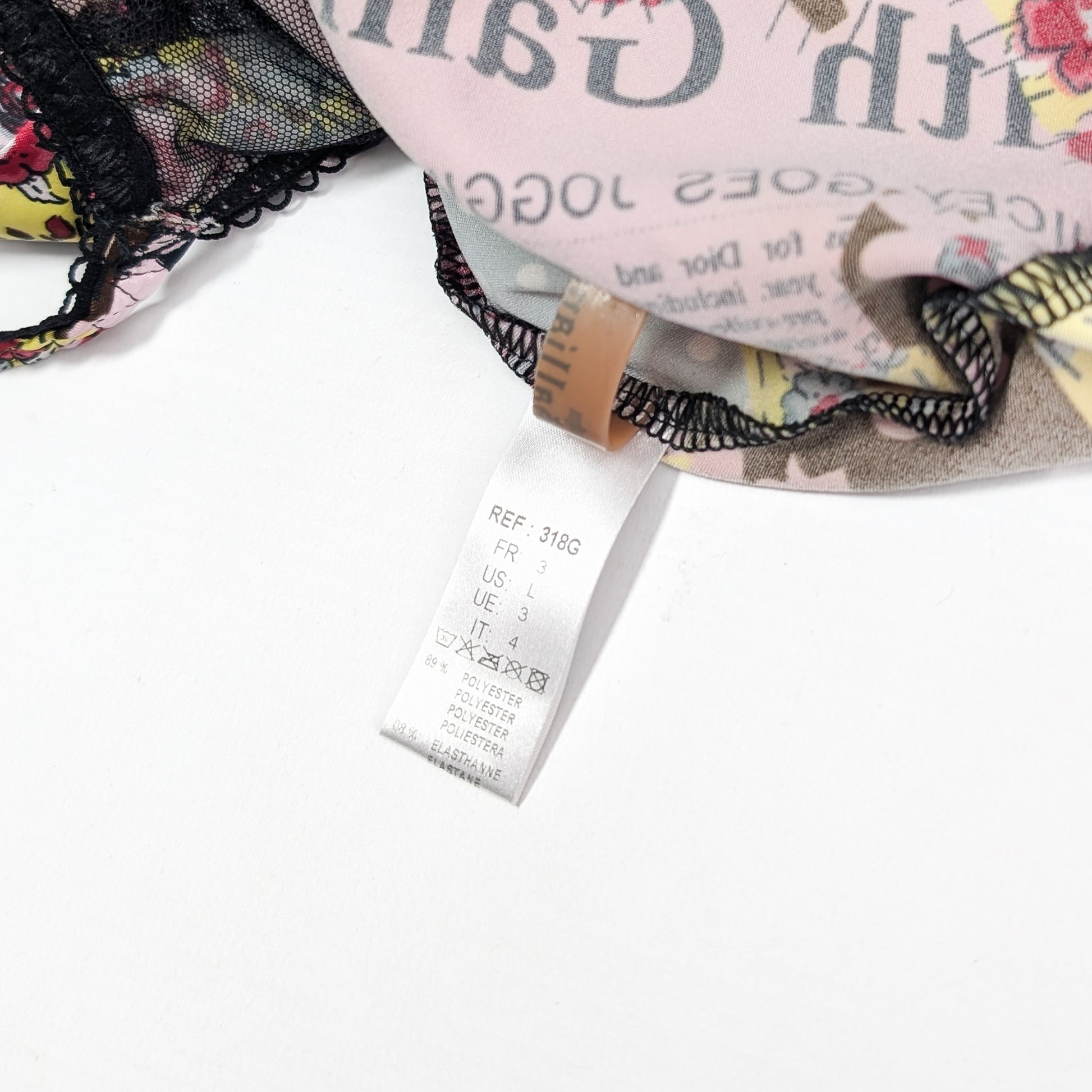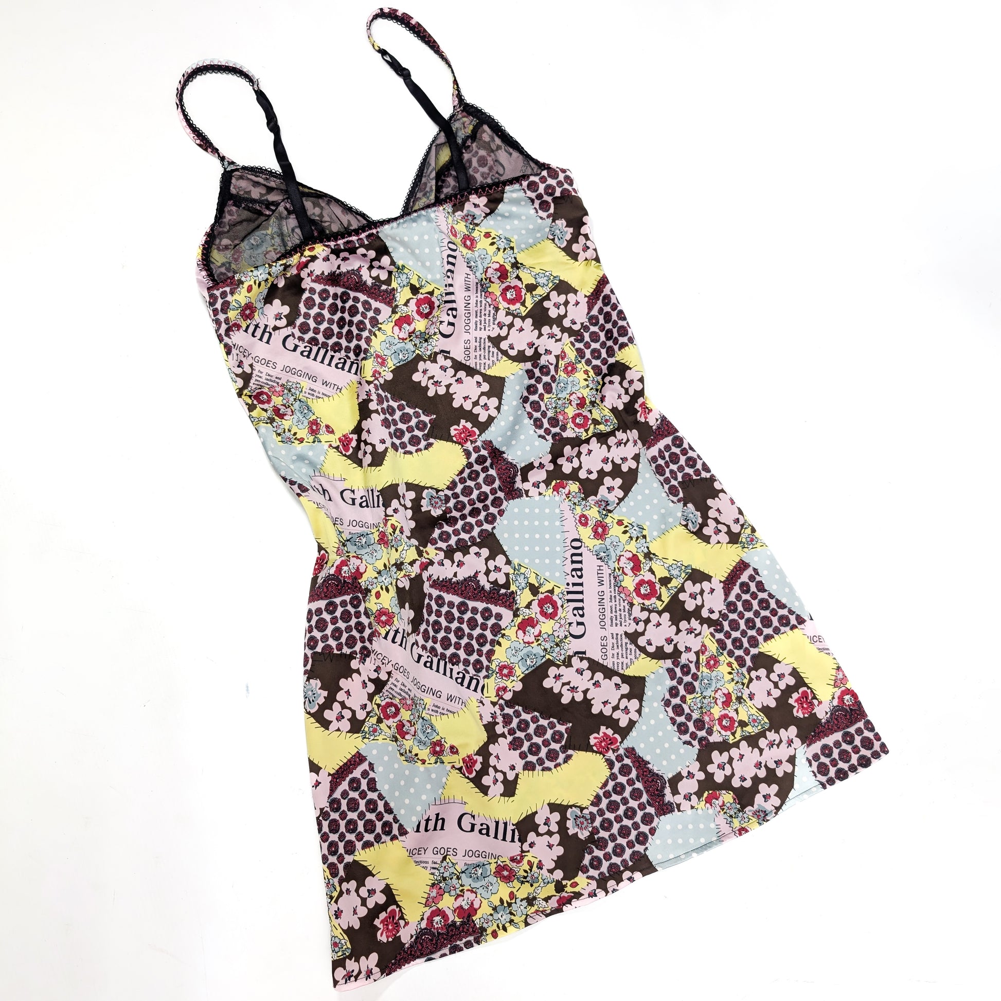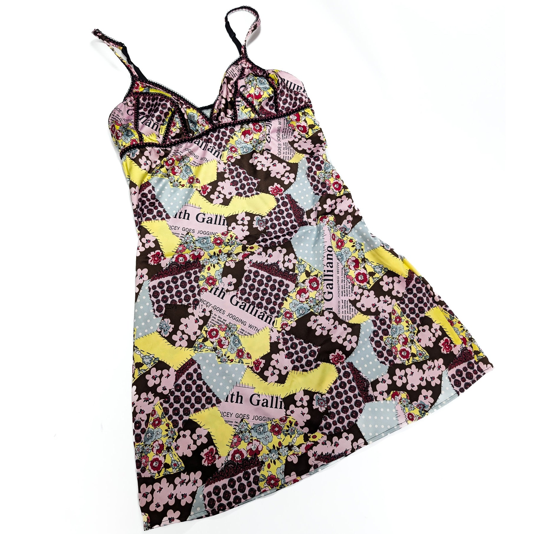 Item: John Galliano silk mini dress with "Galliano" inscription.