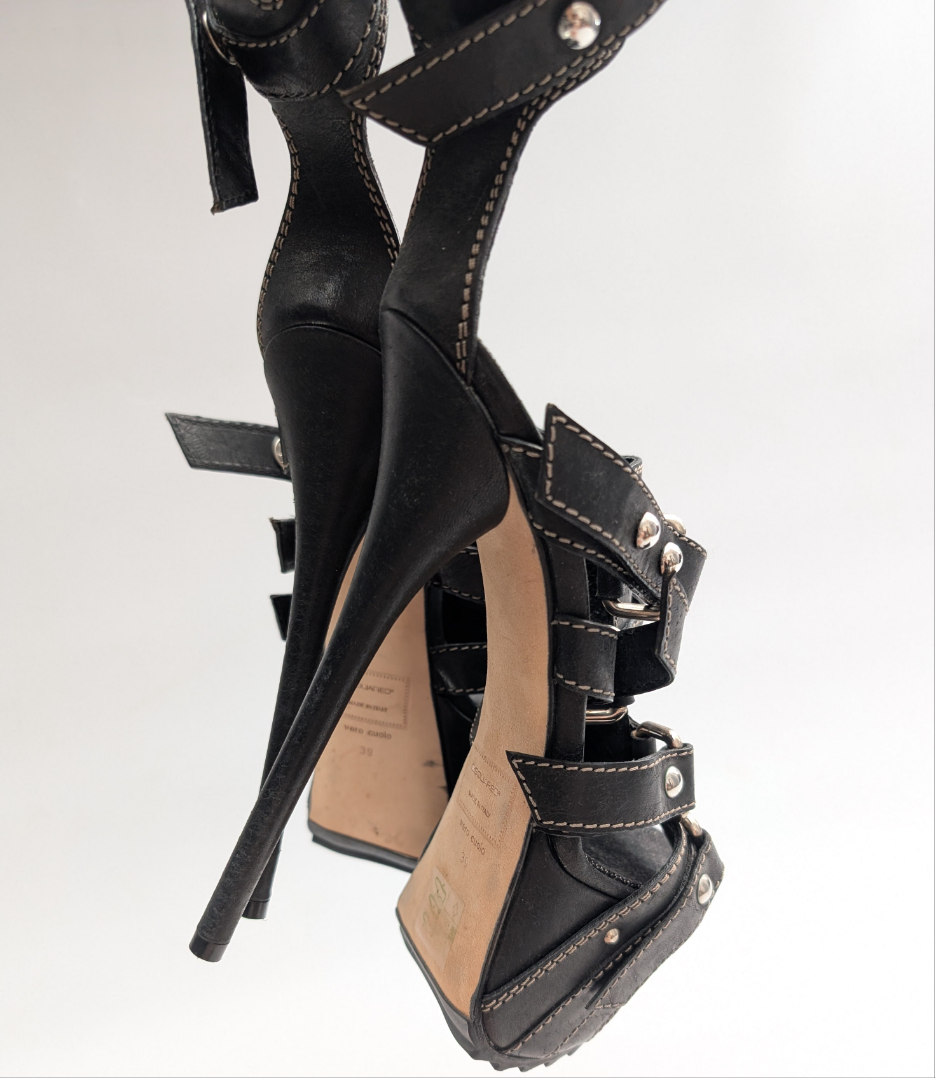 Item: Dsquared2 black leather gladiator style sandals with platform and tie.