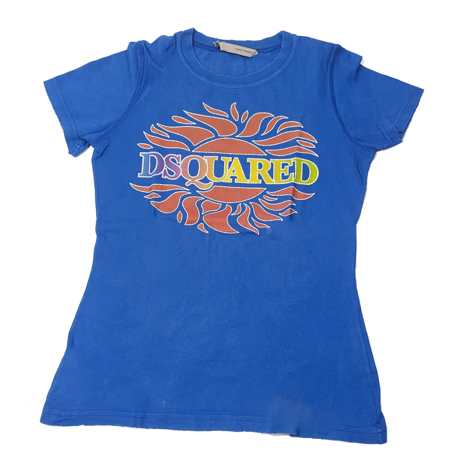 Item: Dsquared blue t-shirt with multi-colored inscription.