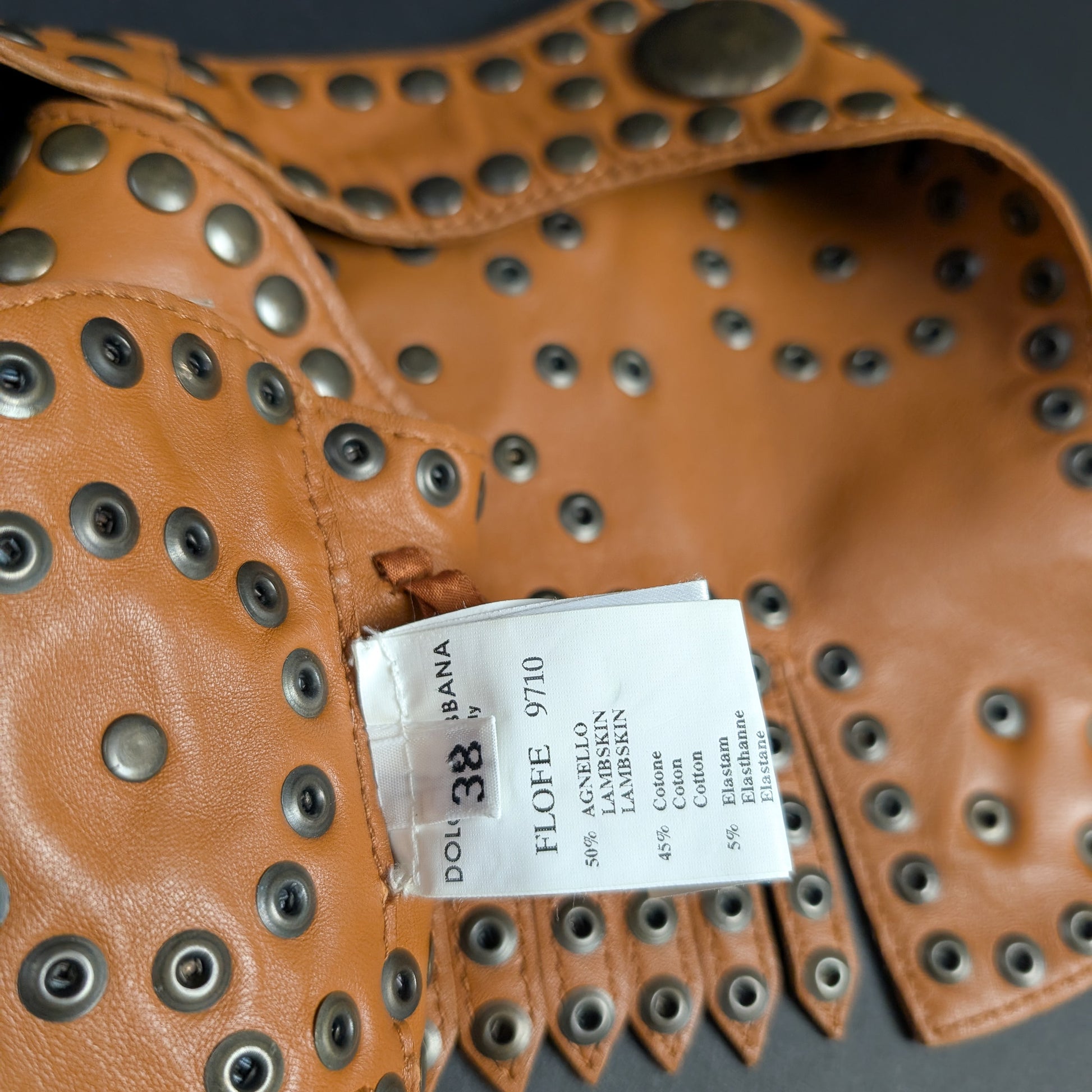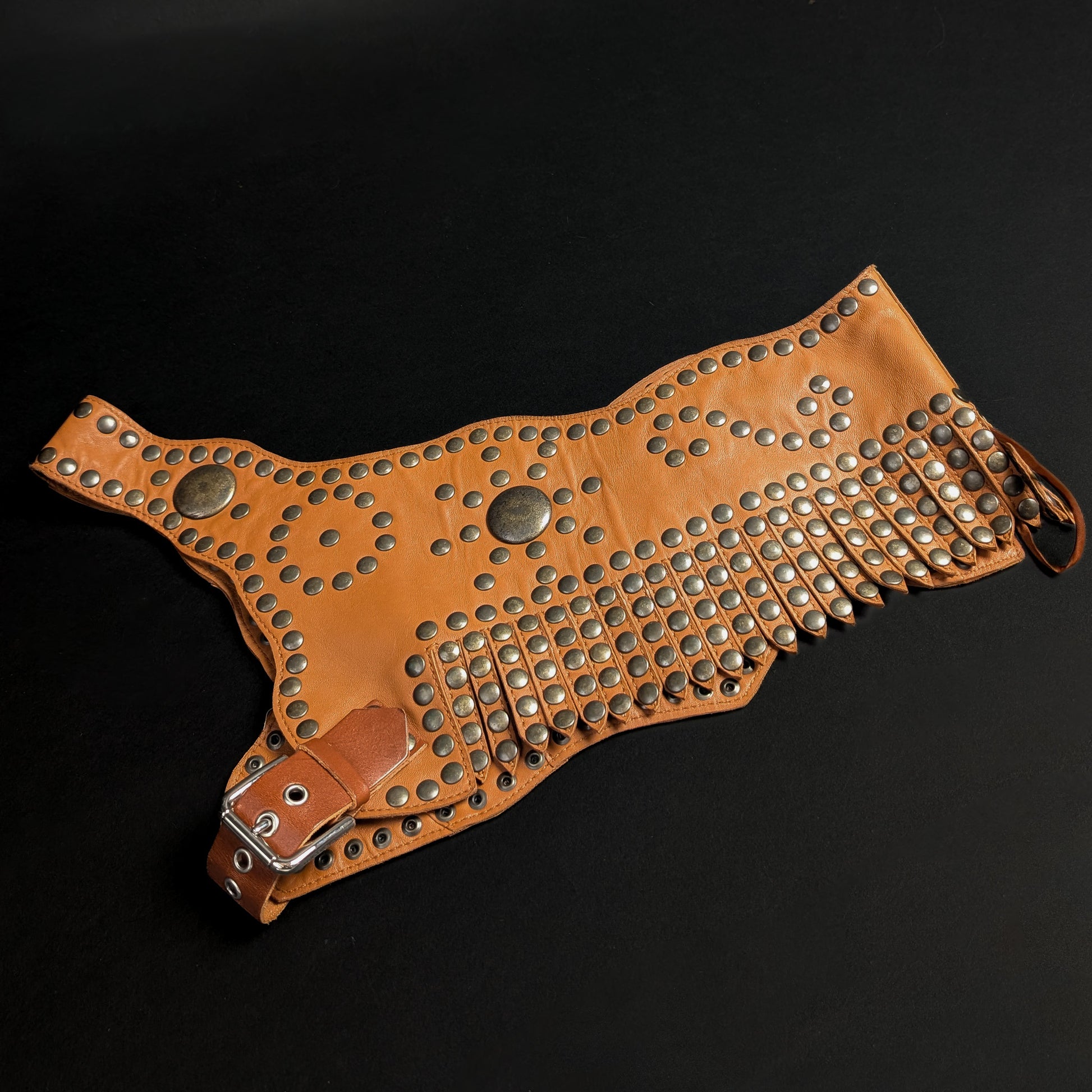 Item: Leather corset top with buckle and stud details.