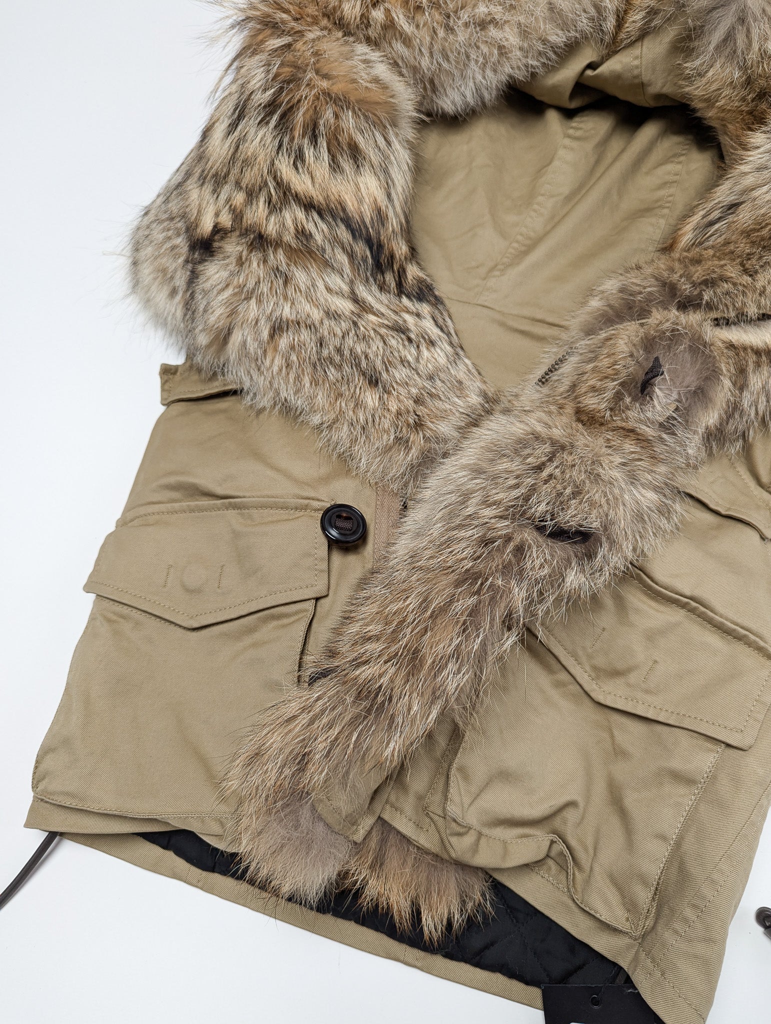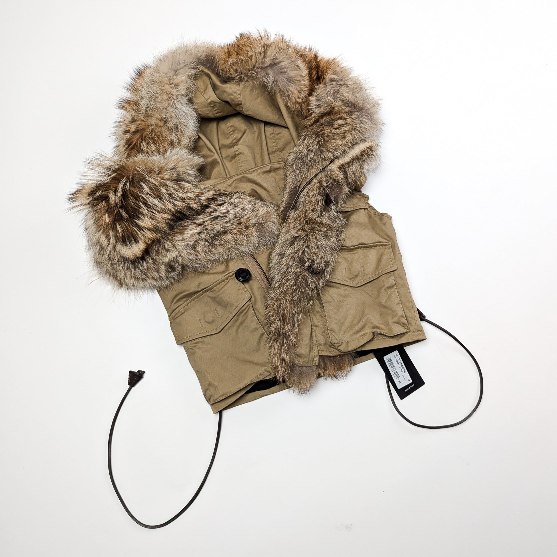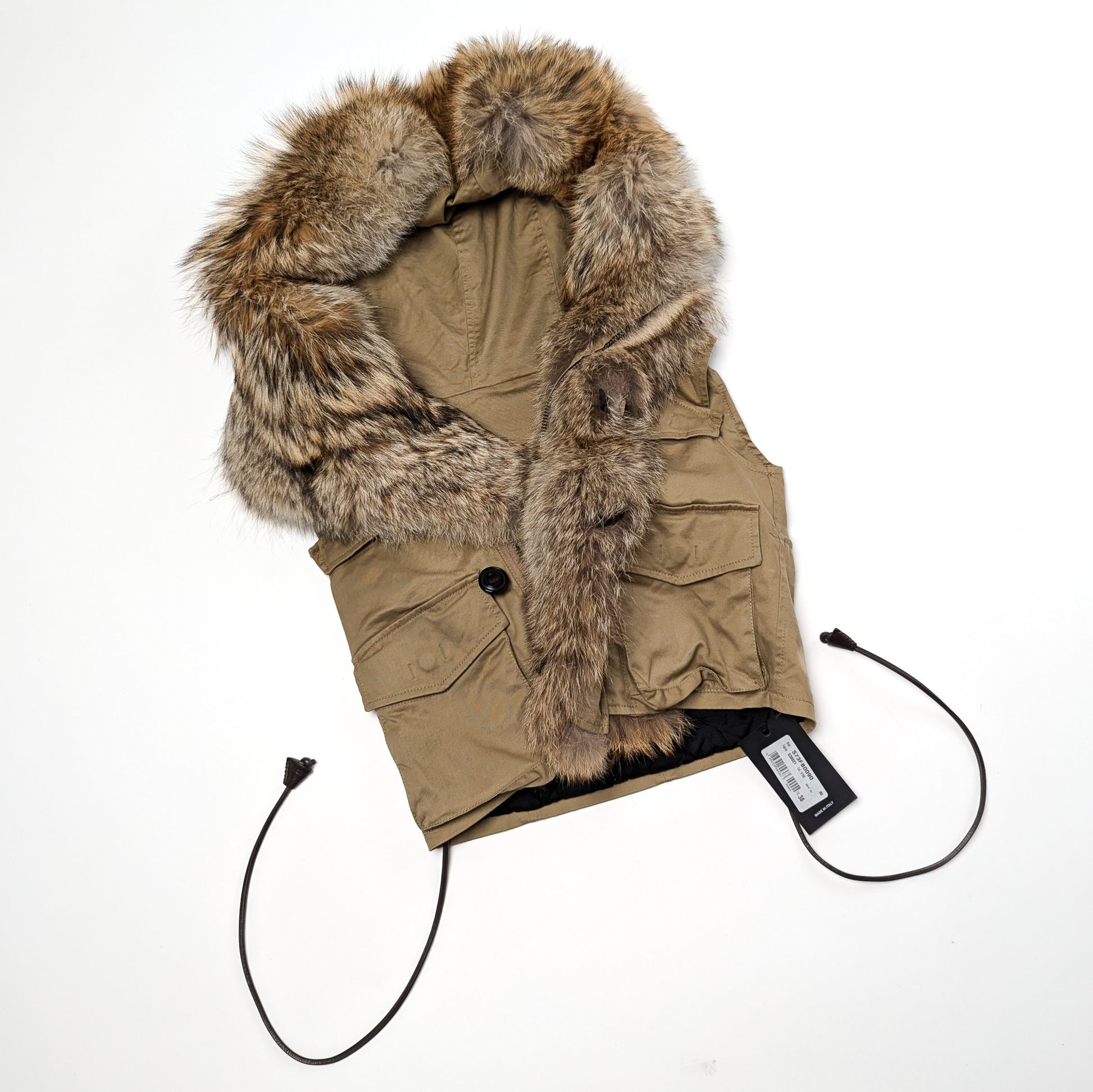 Item: Veste doudoune sans manche fourrure véritable Dsquared2 avec une capuche oversize.
