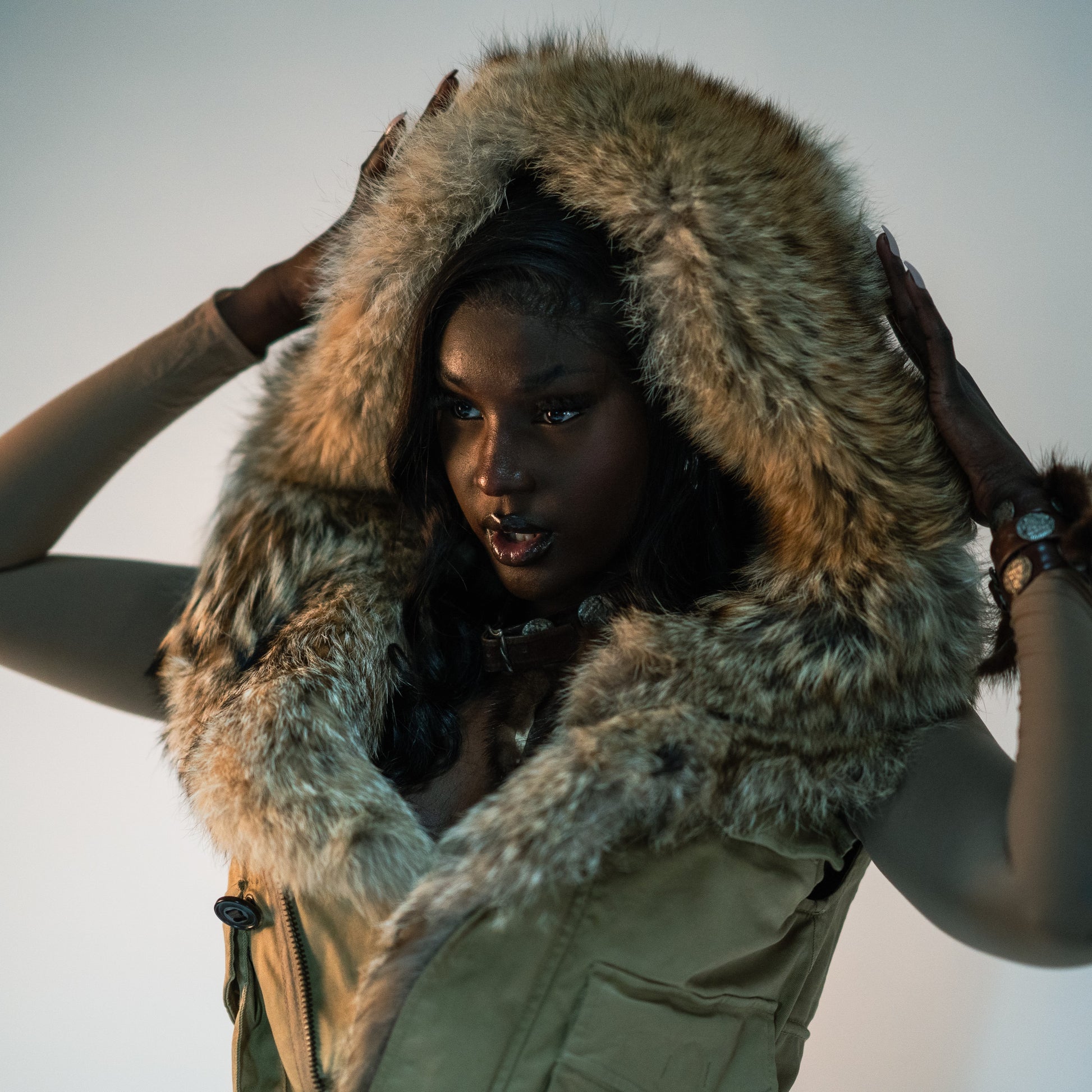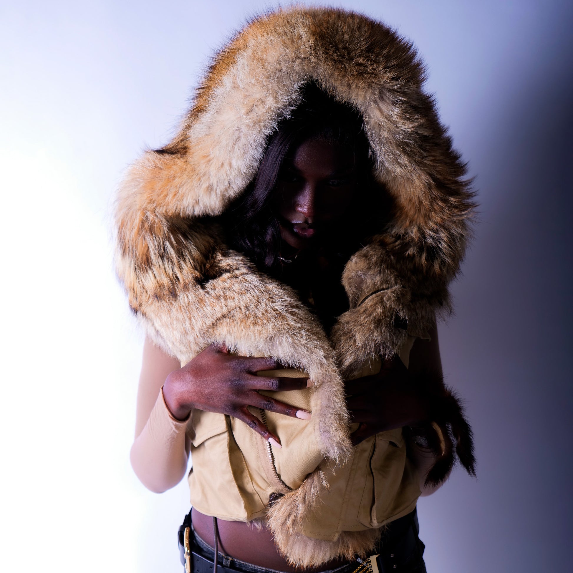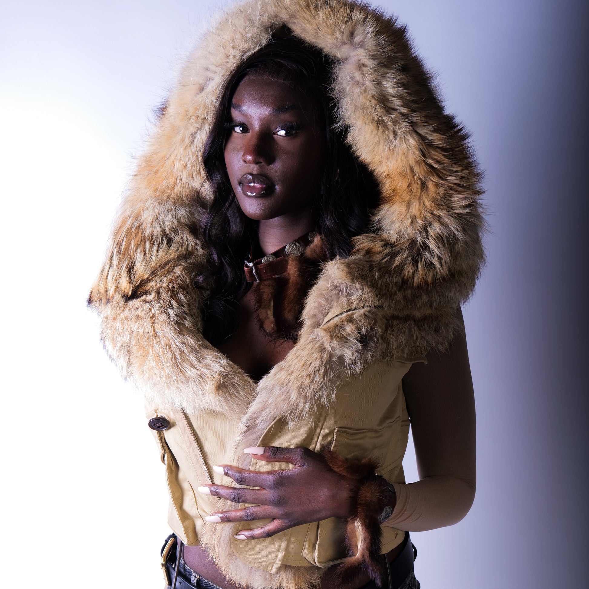 Item: Veste doudoune sans manche fourrure véritable Dsquared2 avec une capuche oversize.