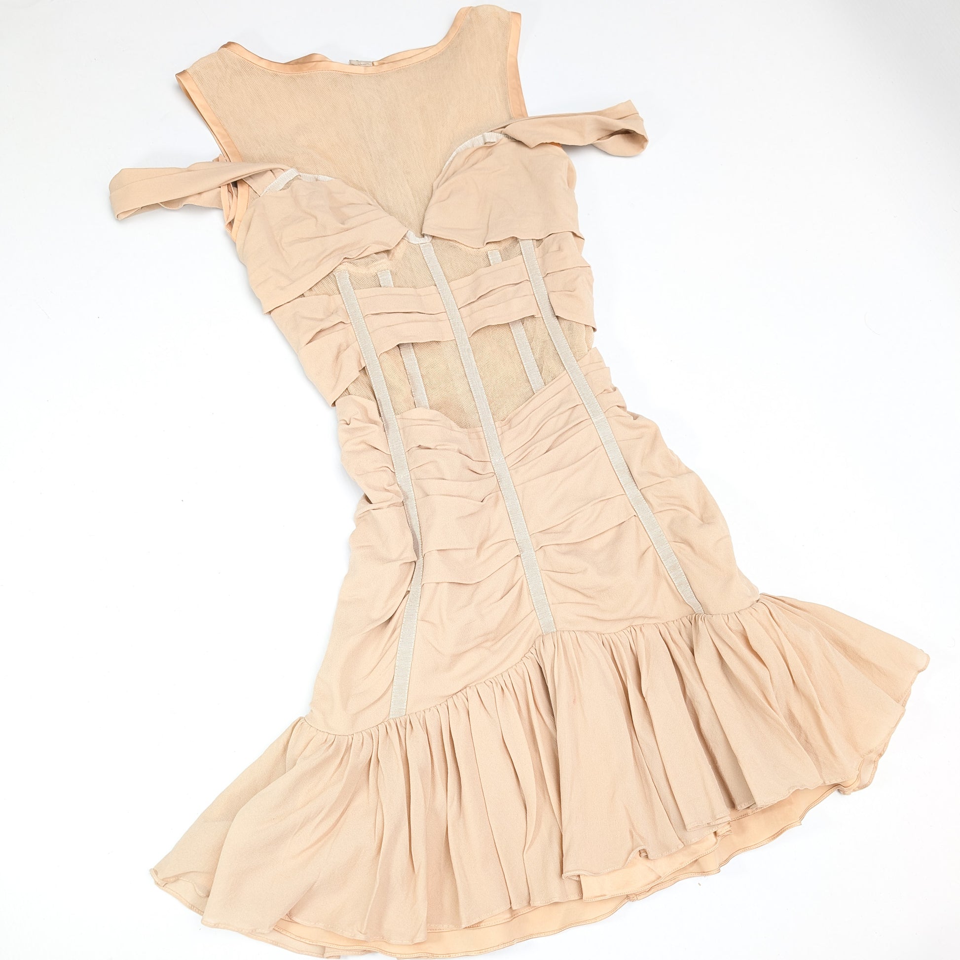Item: Robe Dolce & Gabbana à découpes en résille transparente, épaules dénudées et froncée. Stretch.