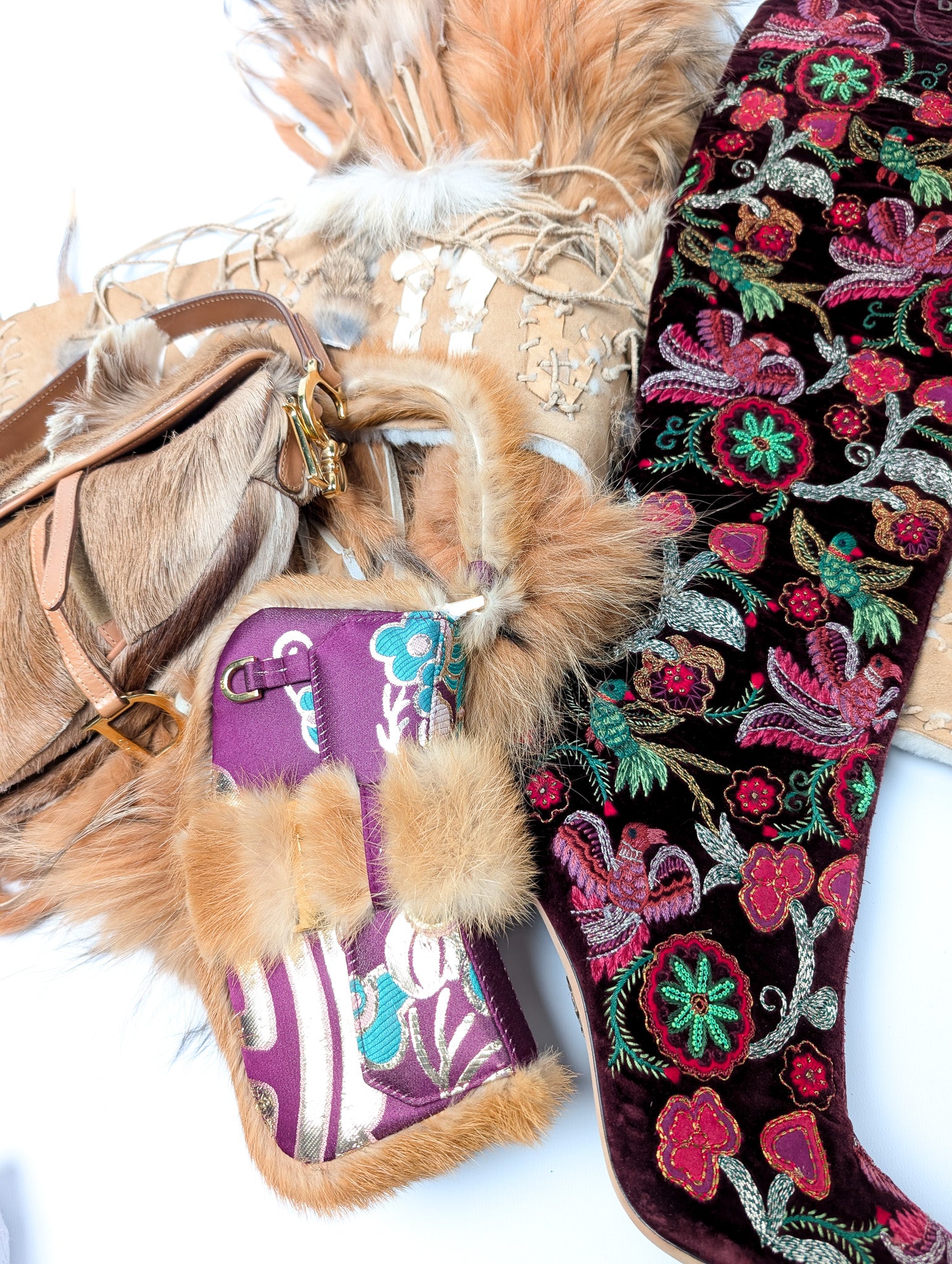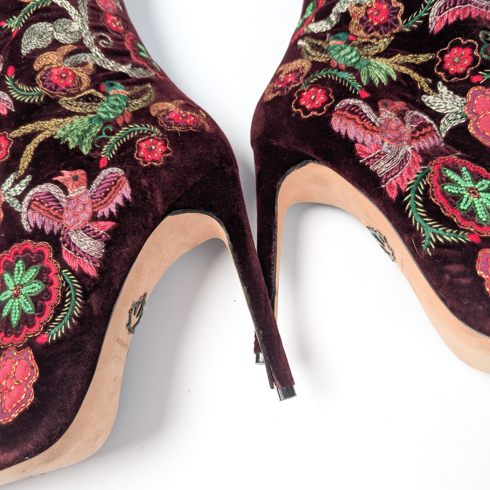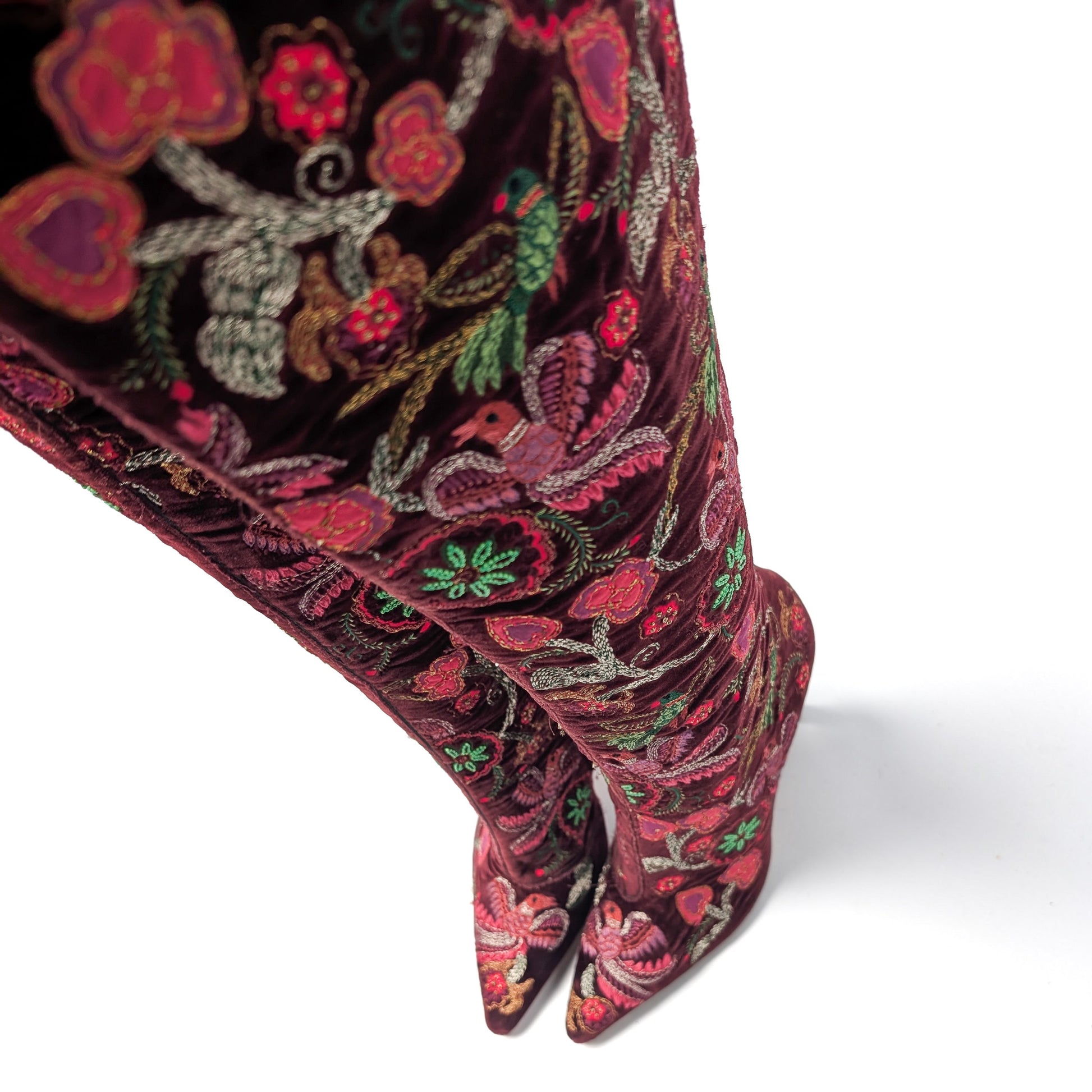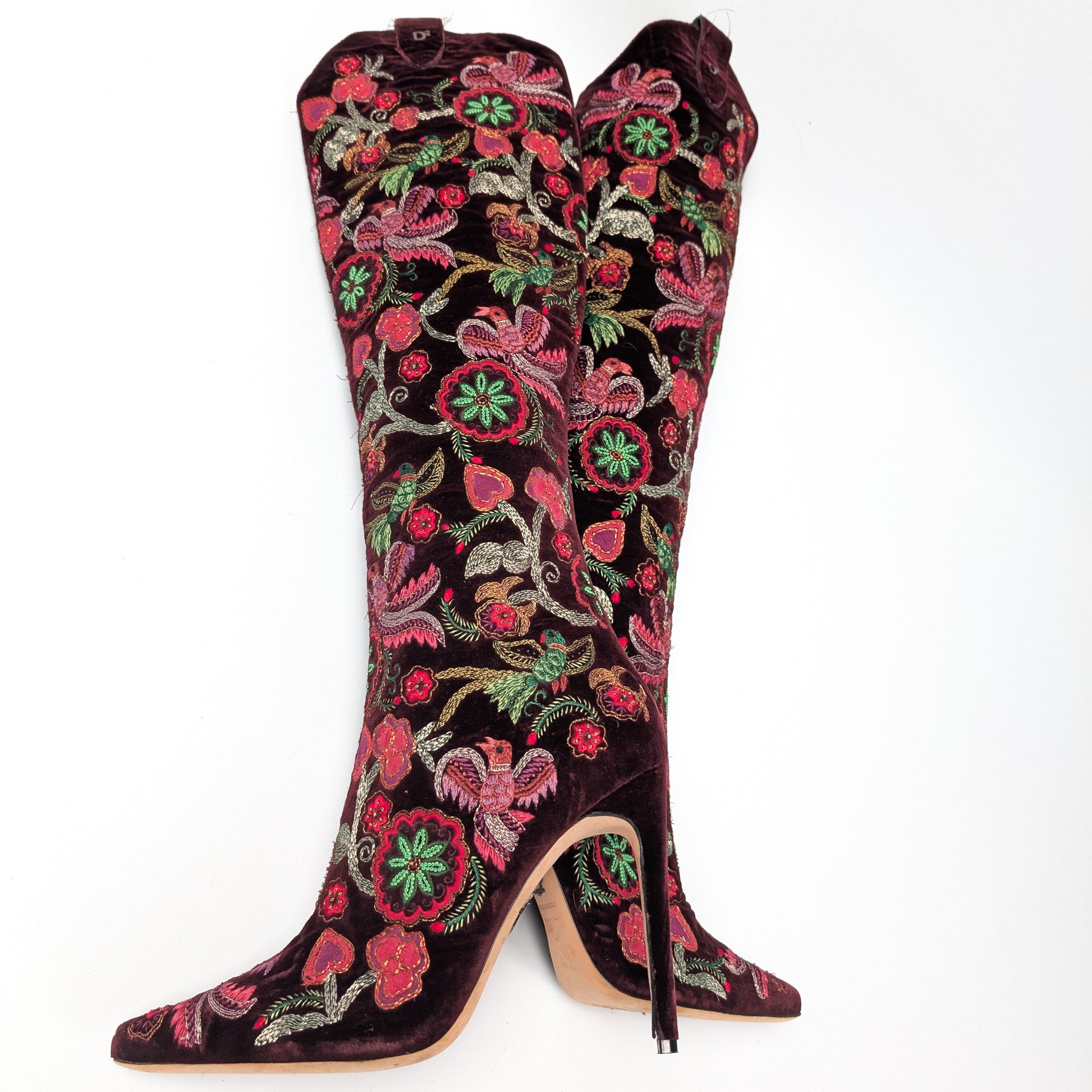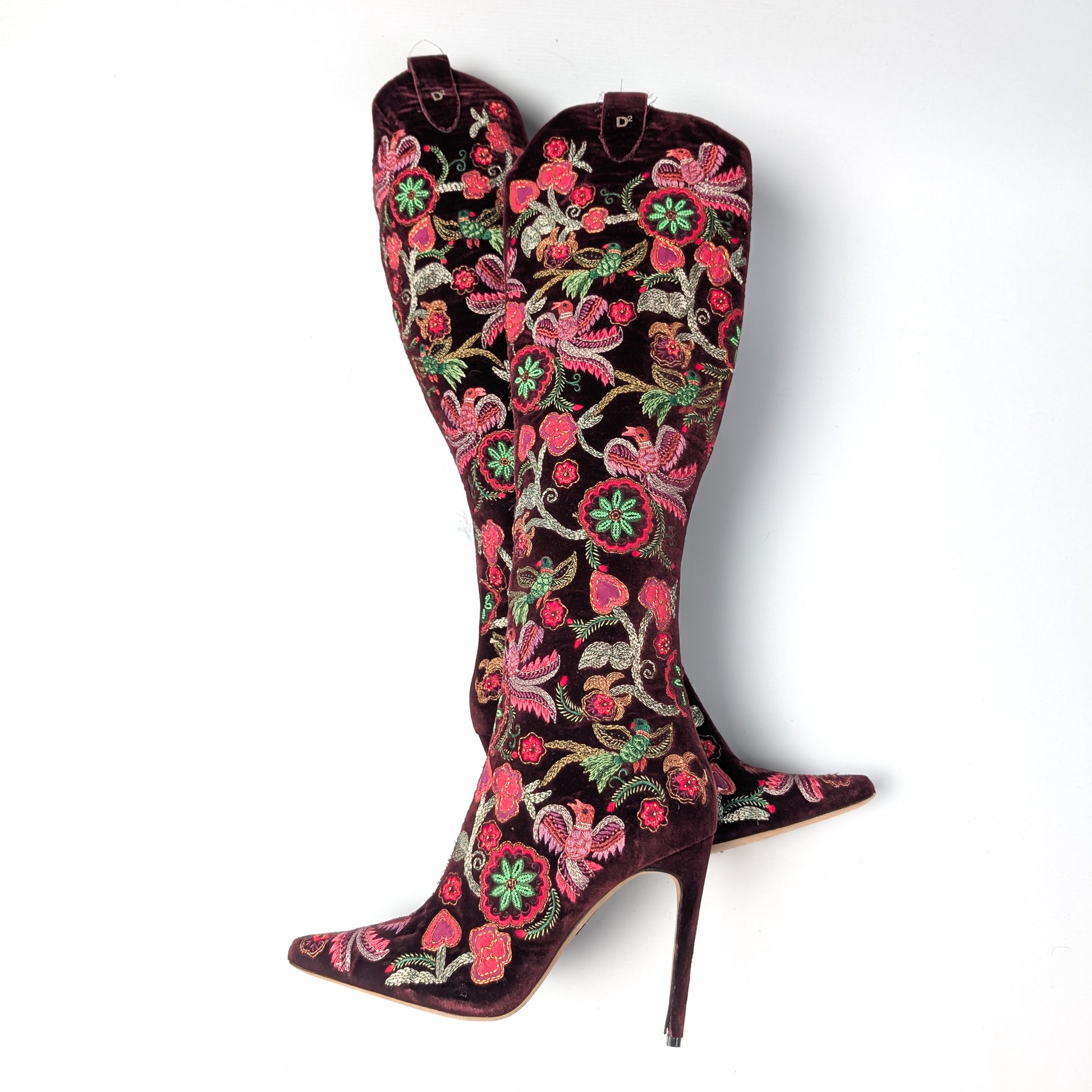 Item: Bottes en velours bordeaux brodées Dsquared2.