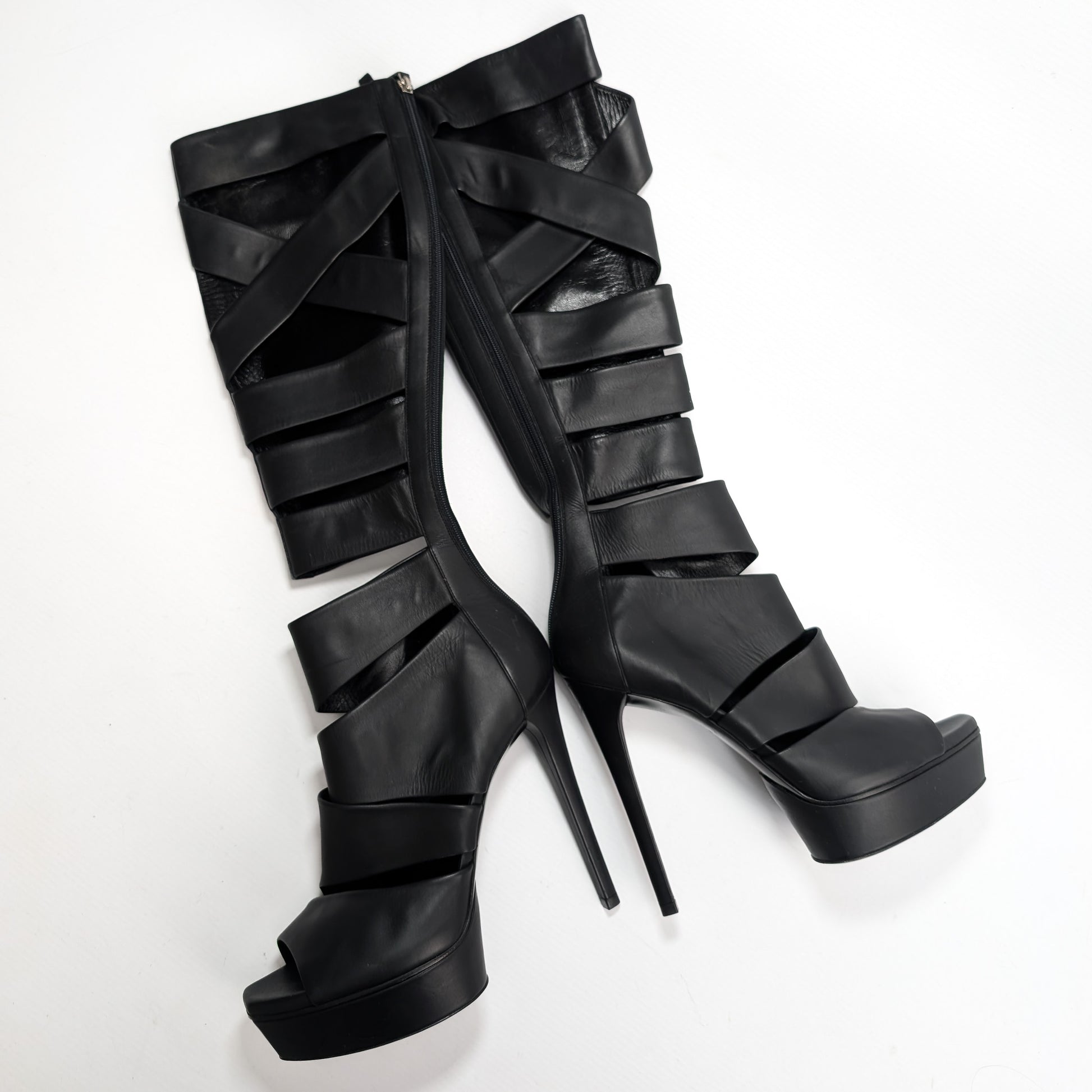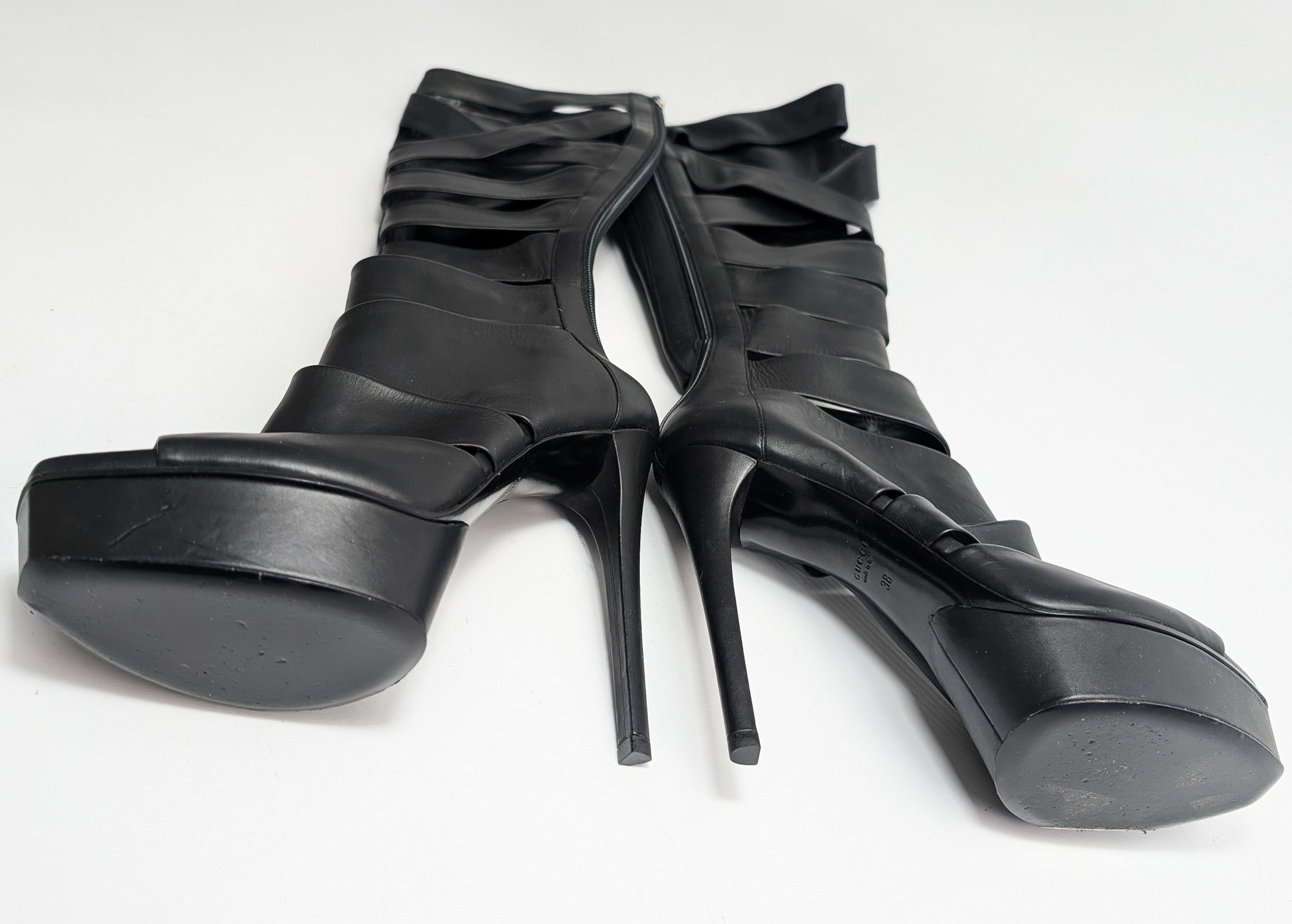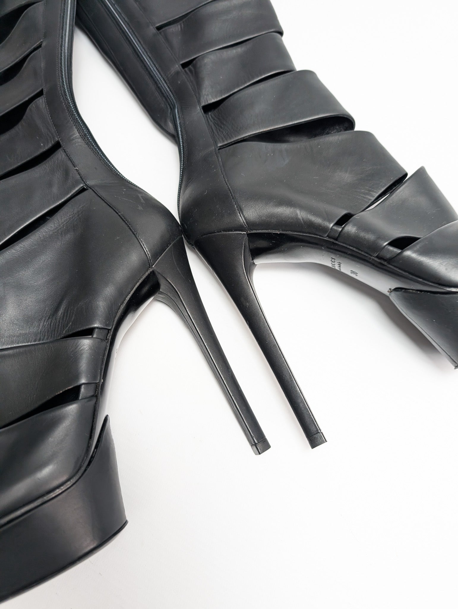 Item: Bottes plateforme en cuir noir "cage" Gucci