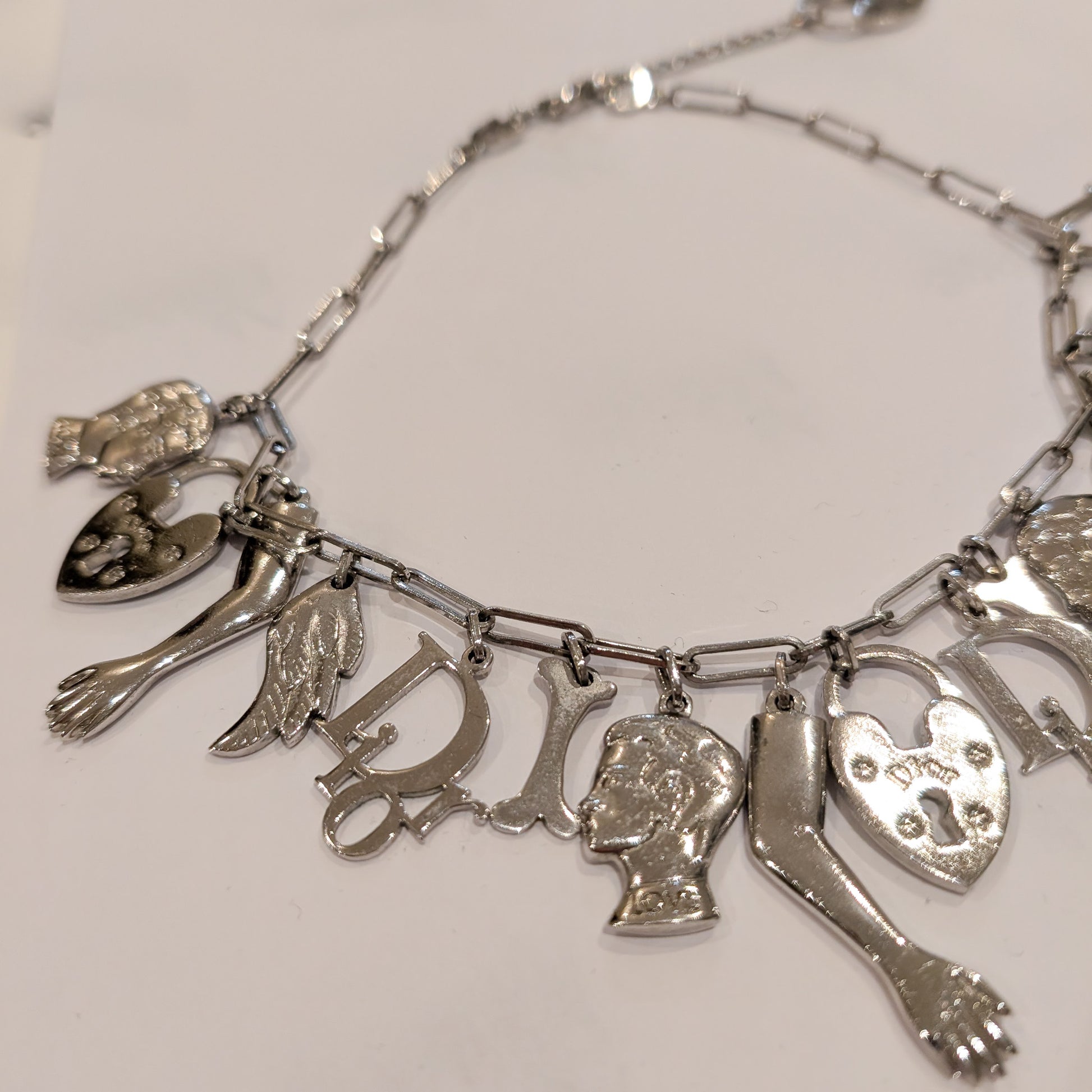 Item: Collier argenté Dior par Galliano ornée de diffèrent charmed.