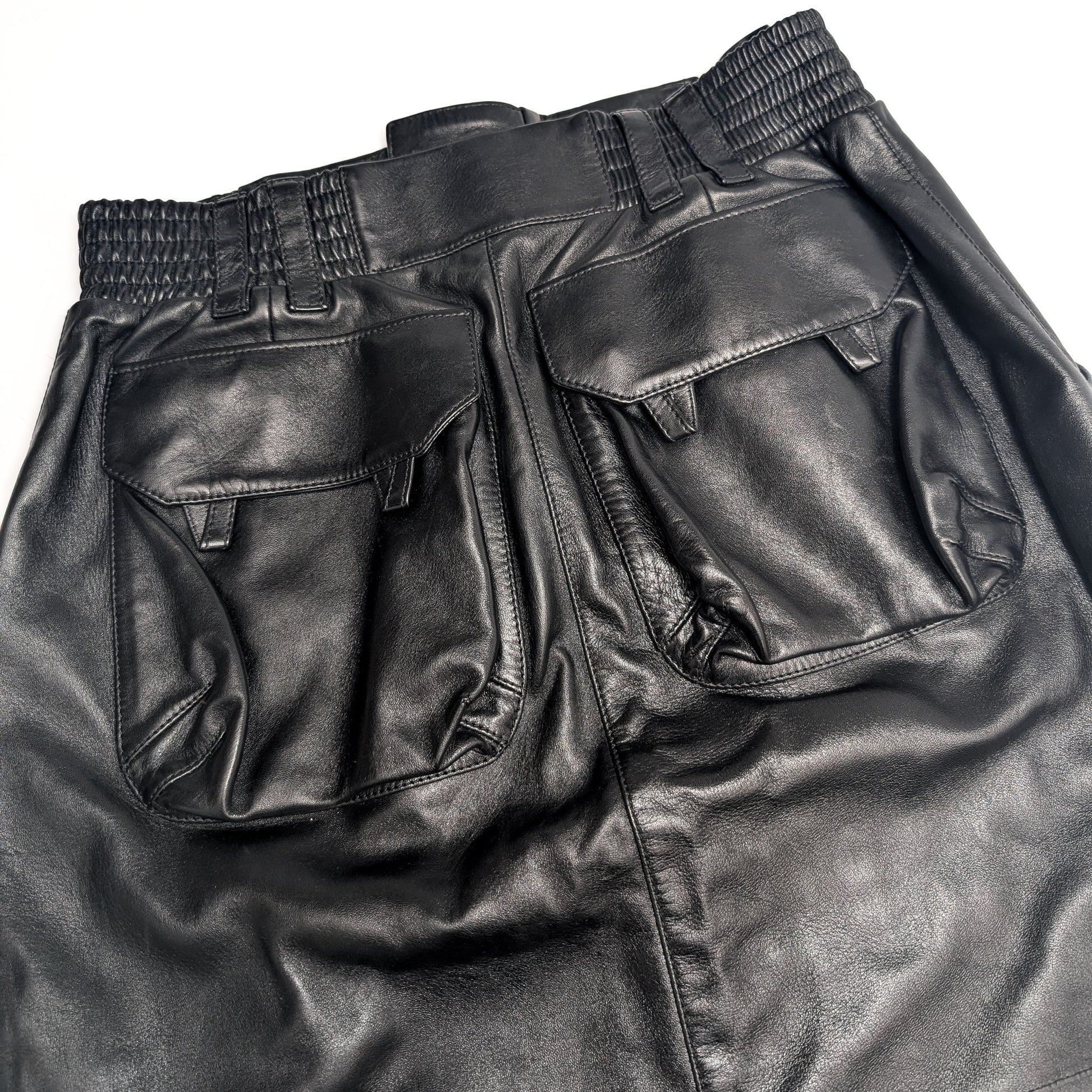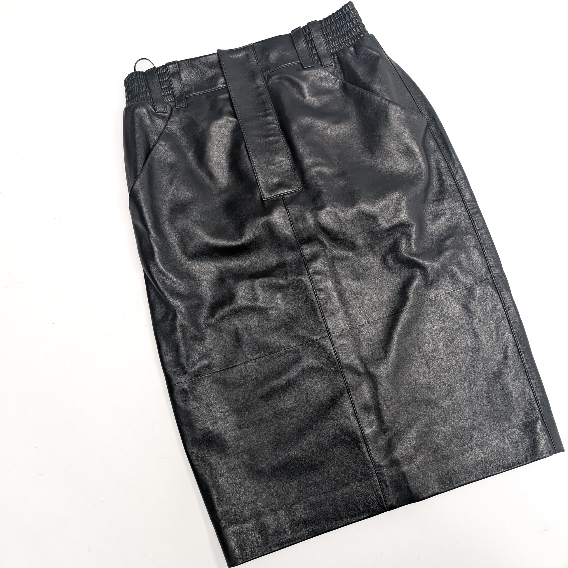 Item: Jupe crayon en cuir d'agneau. Ce n'est pas un article vintage car elle provient du défilé Hiver 2024. Poche en relief à l'arrière. Flatteur.