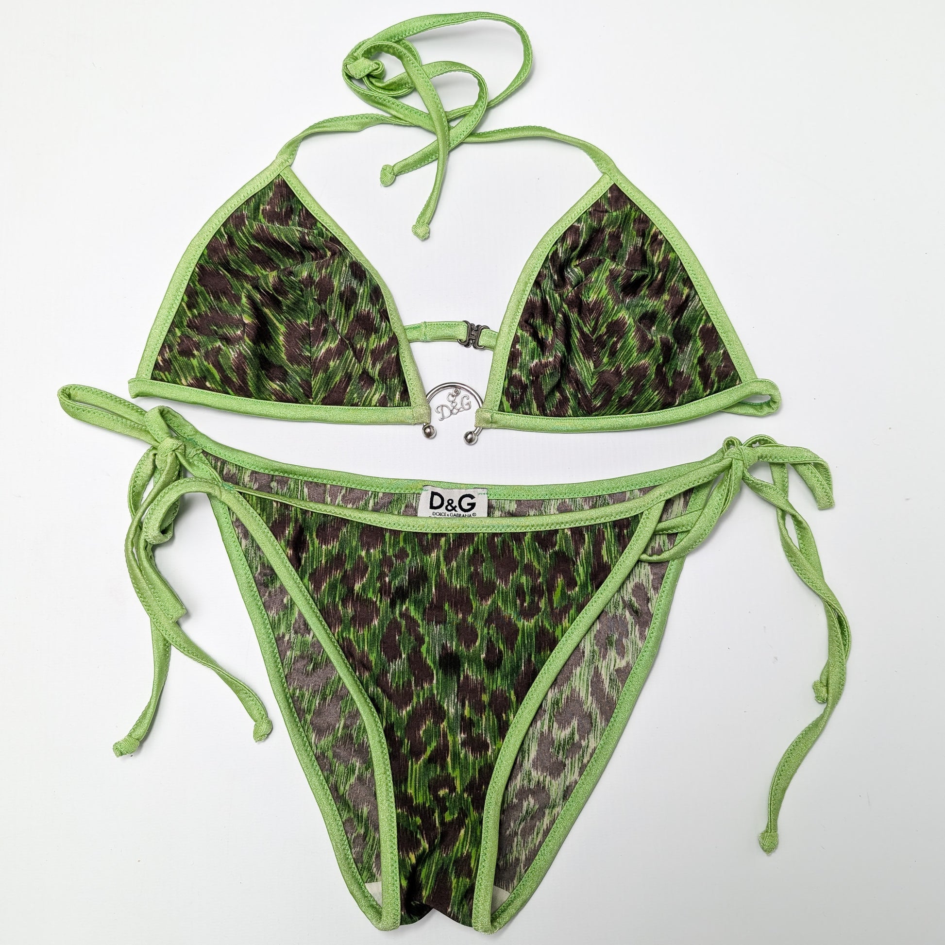 Item: Maillot de bain Dolce & Gabbana à imprimé animal vert orné d'un bijou "D&G".