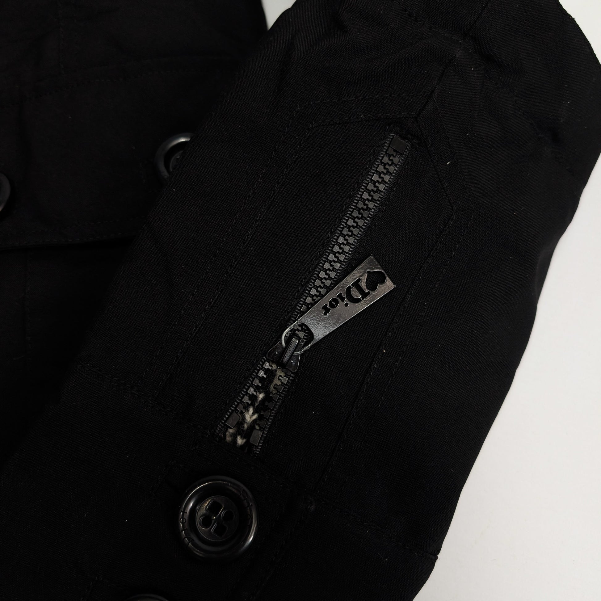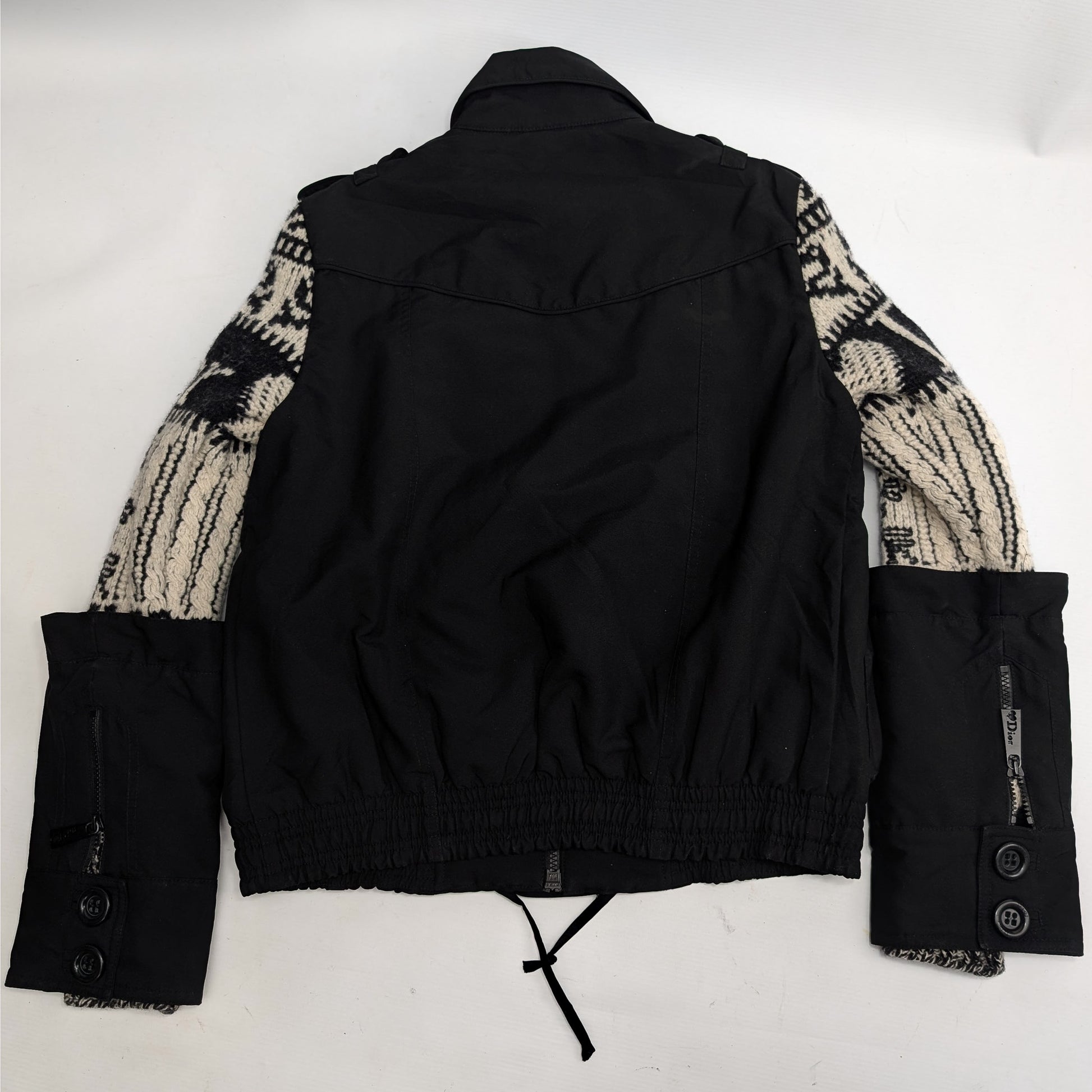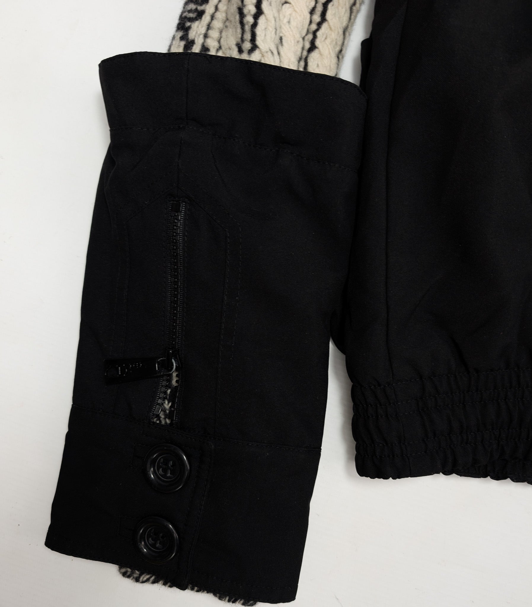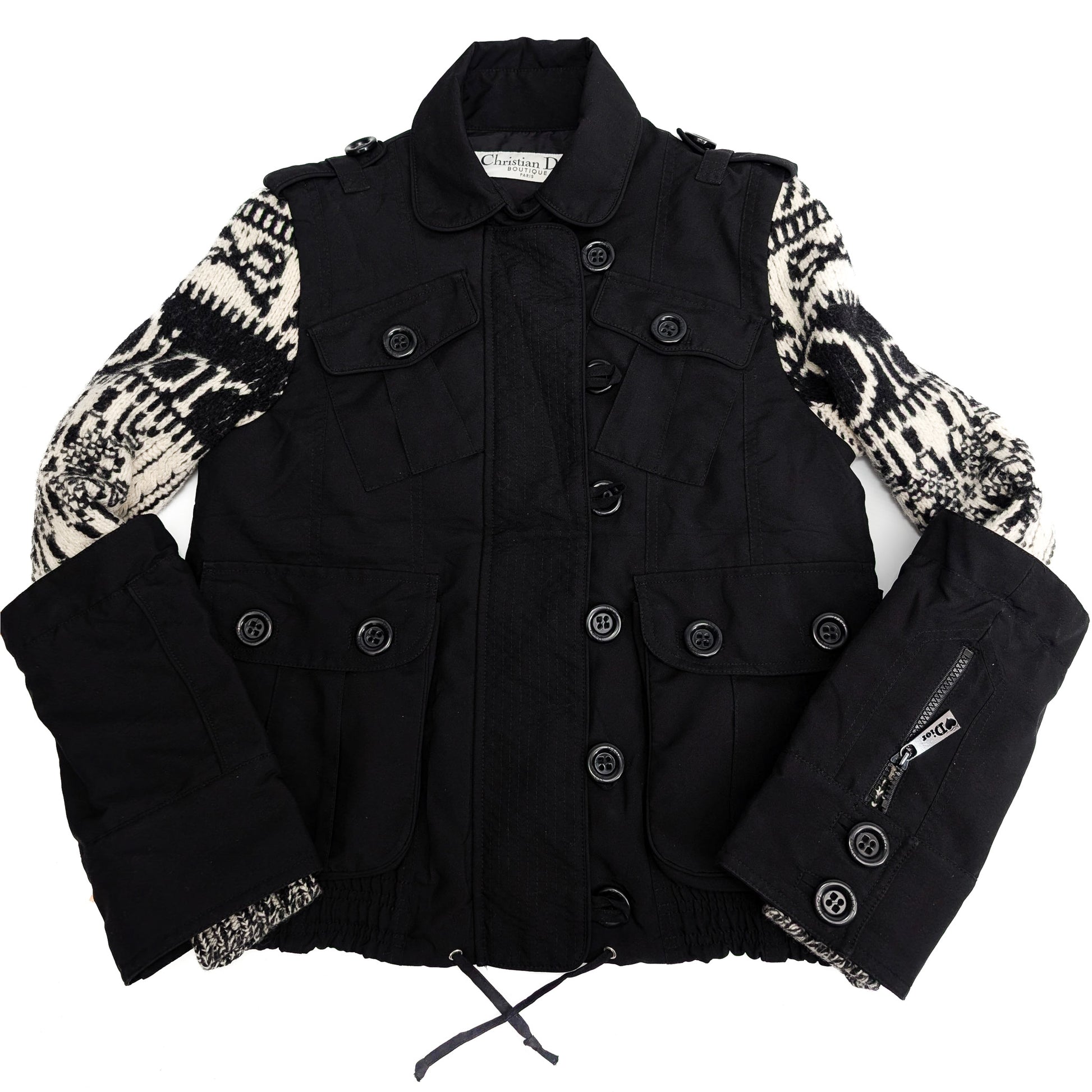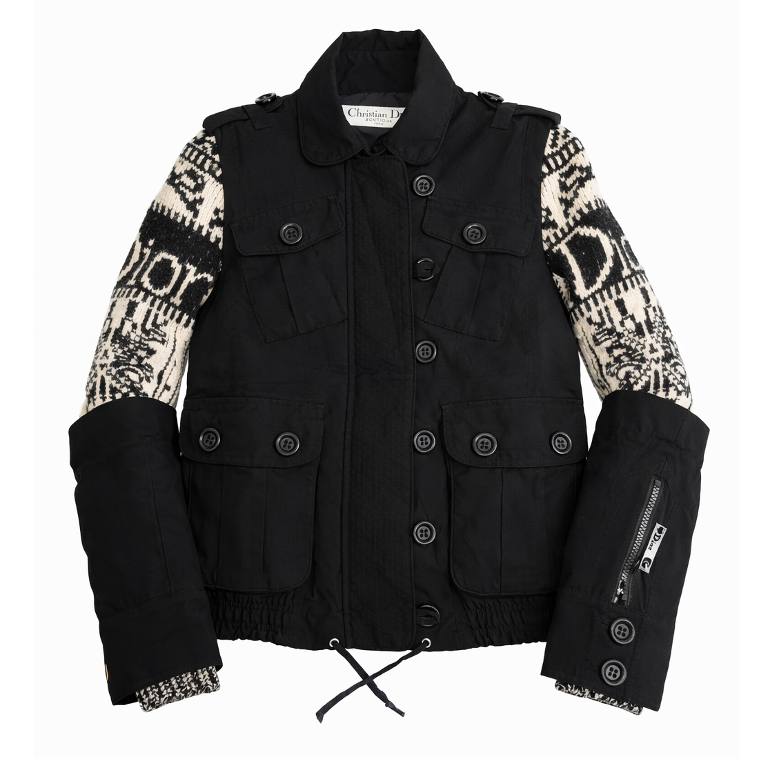 Item: Manteau parka doublée Dior par Galliano noir et blanc. Manchette amovible.