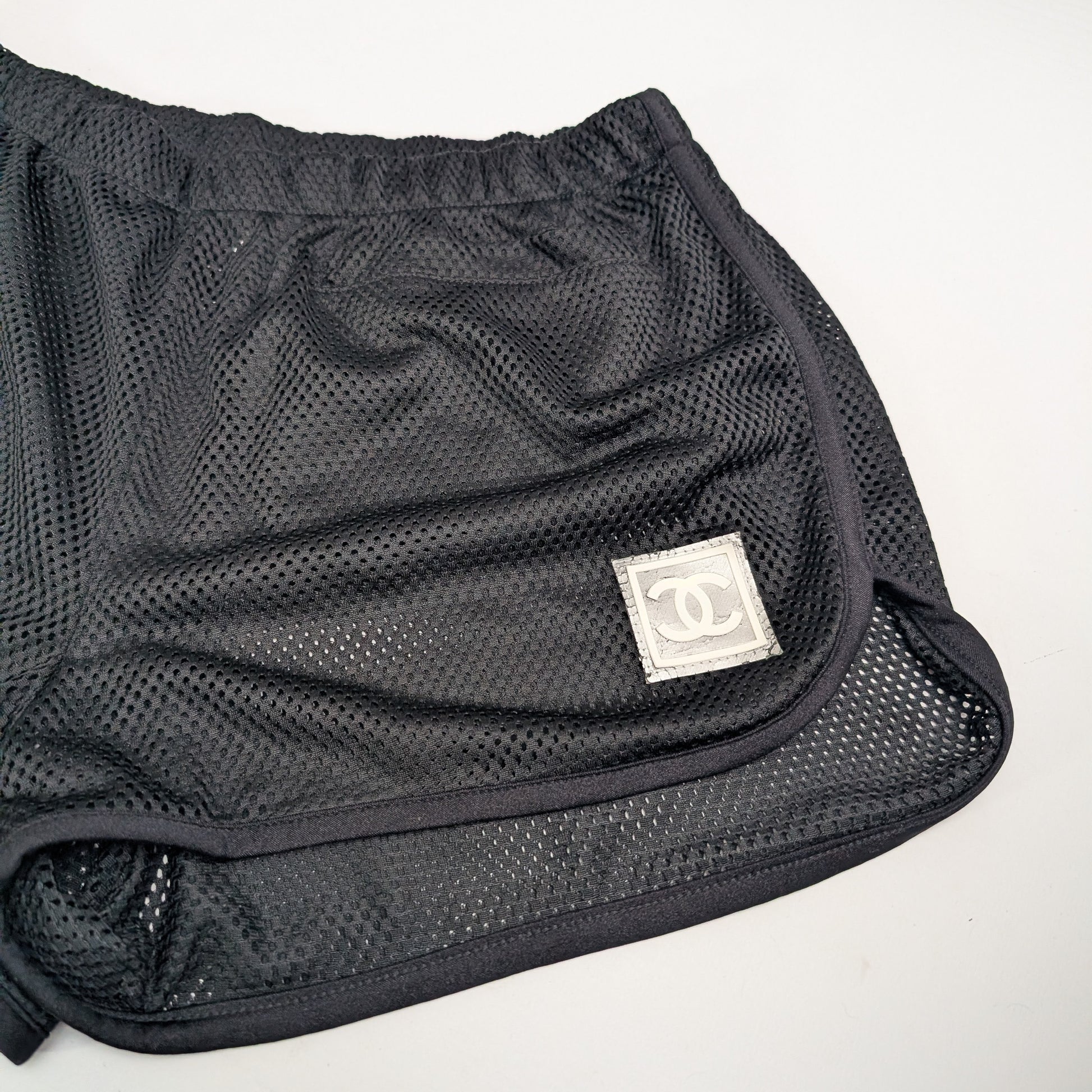 Item: Short style sport, piqueté orné du logo Chanel.