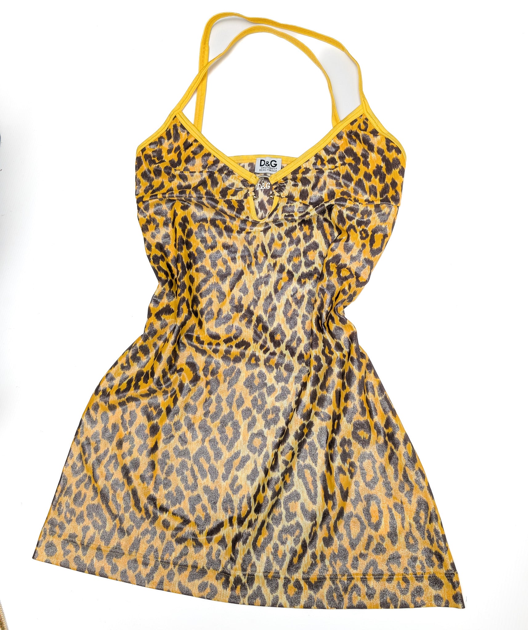 Item: Robe Dolce & Gabbana à imprimé animal jaune orné d'un bijou "D&G".