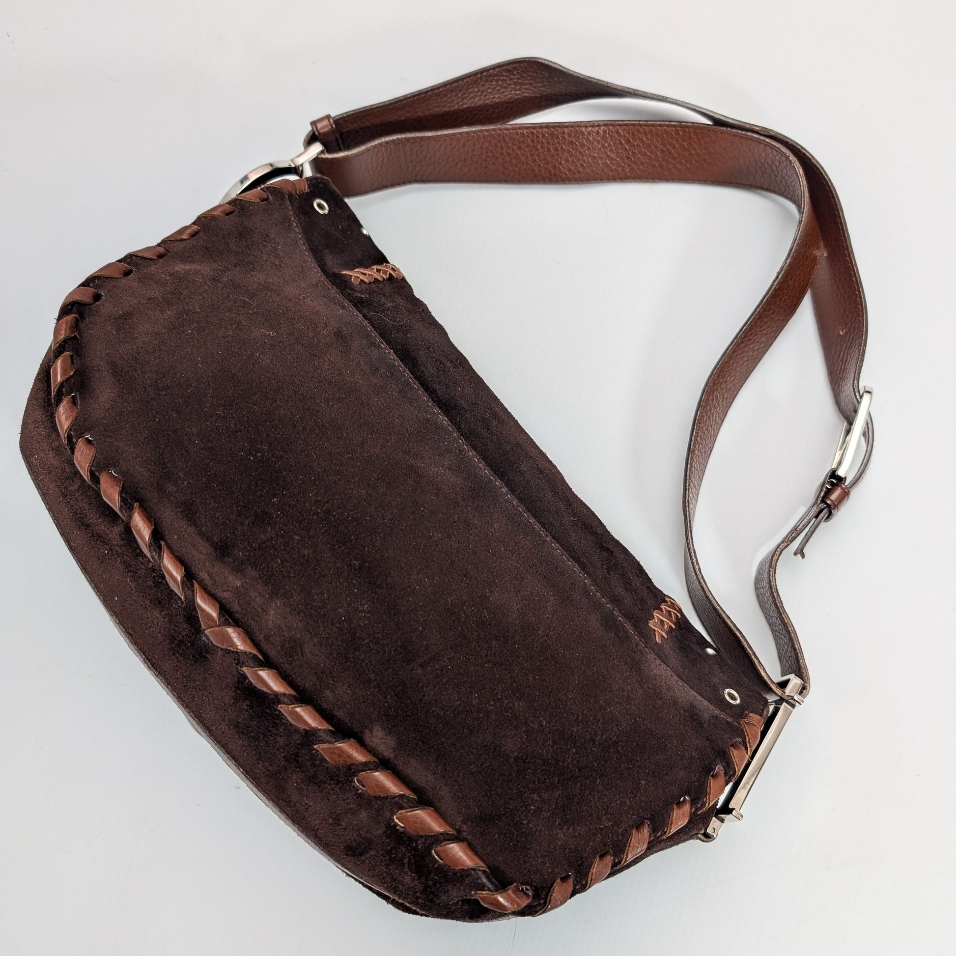 Brown suede bag by Galliano Peace and Love - S/S 2005