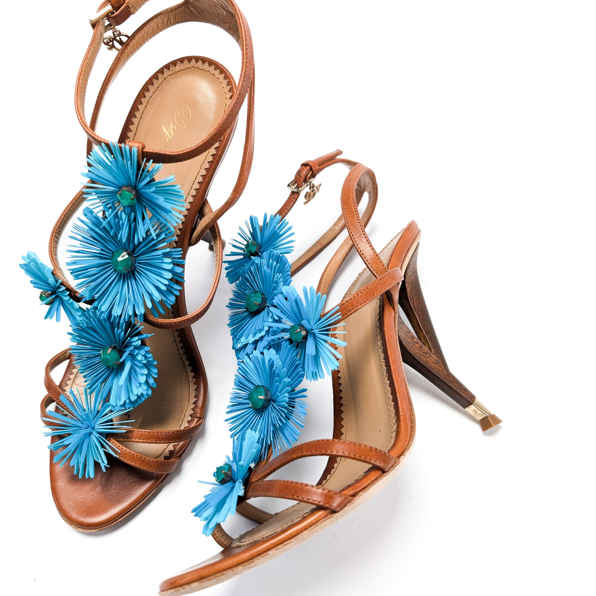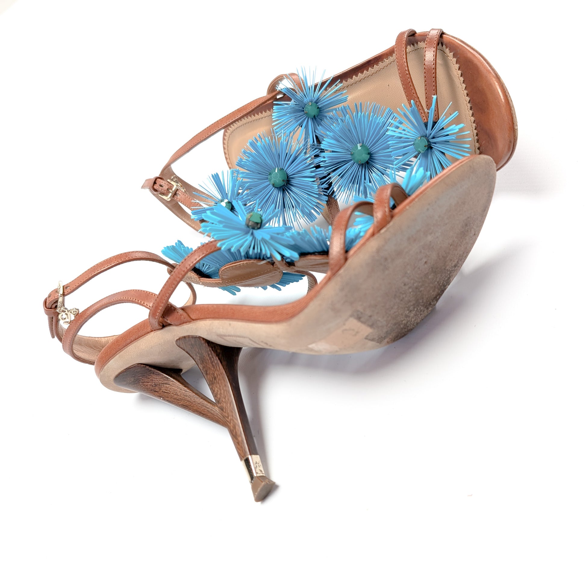 Item: Sandales Dsquared2 à talons géométriques en bois.