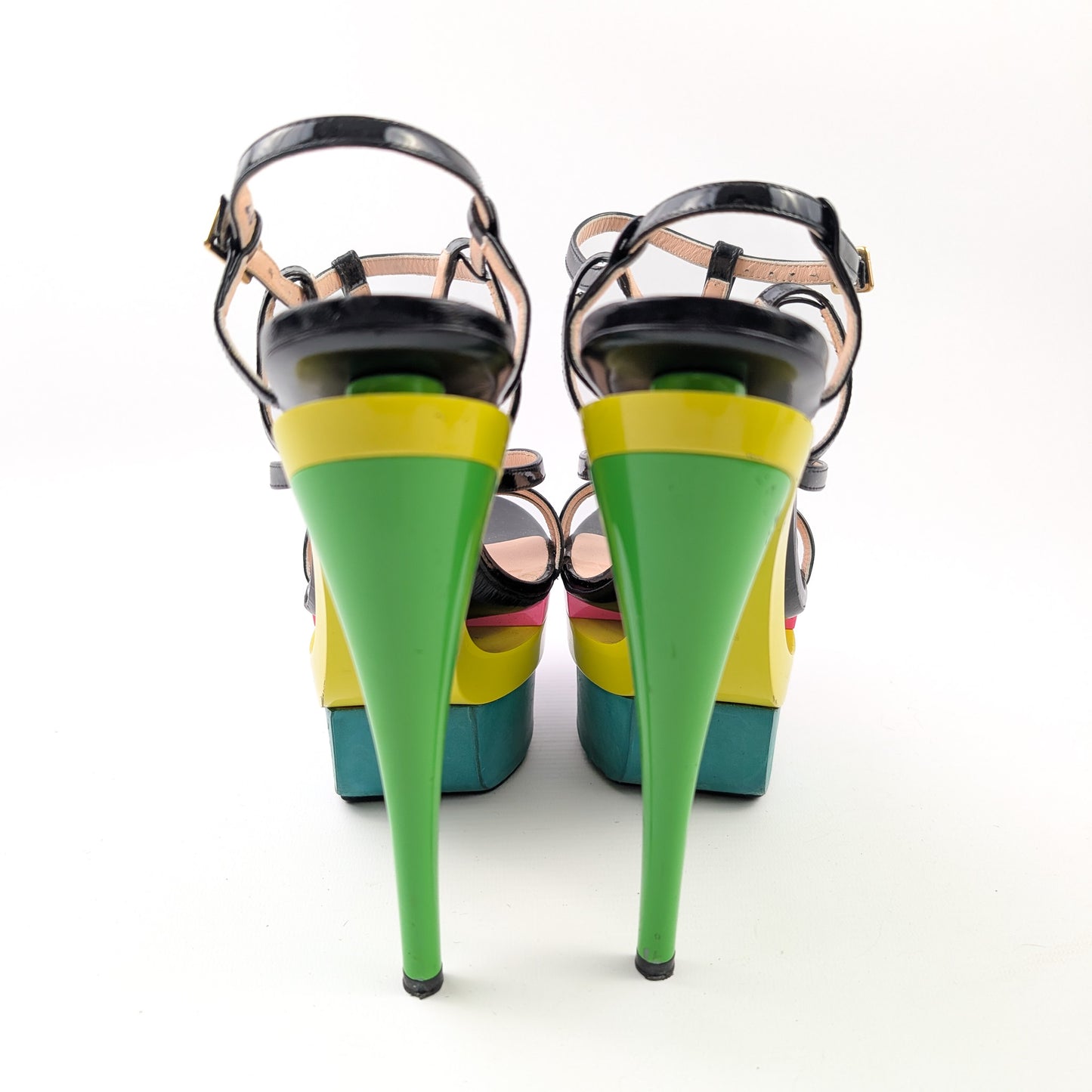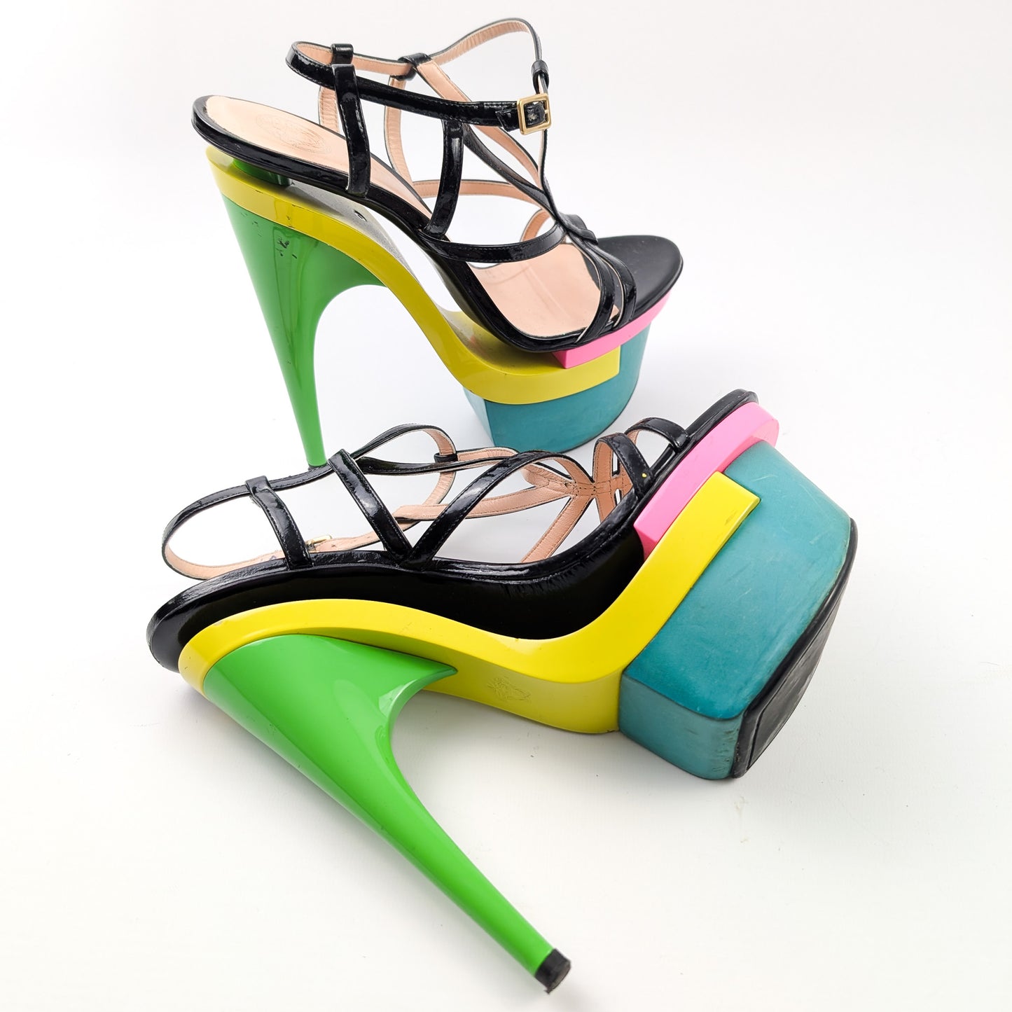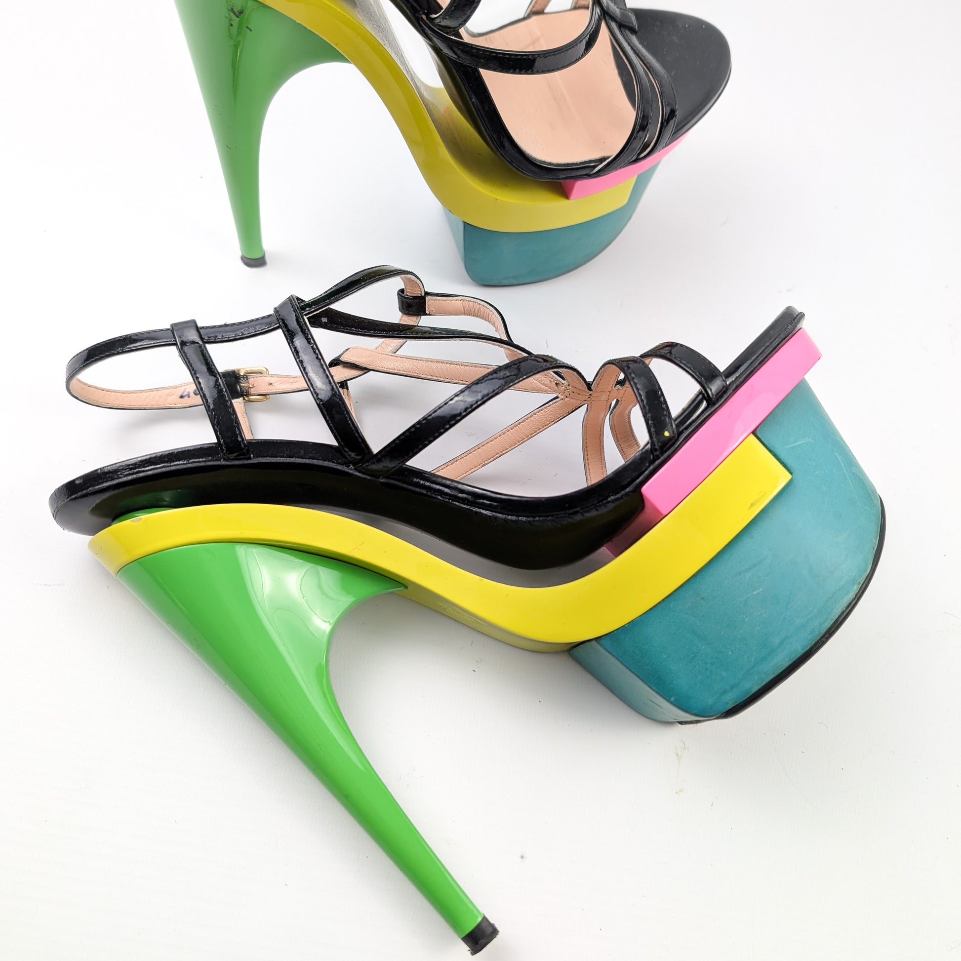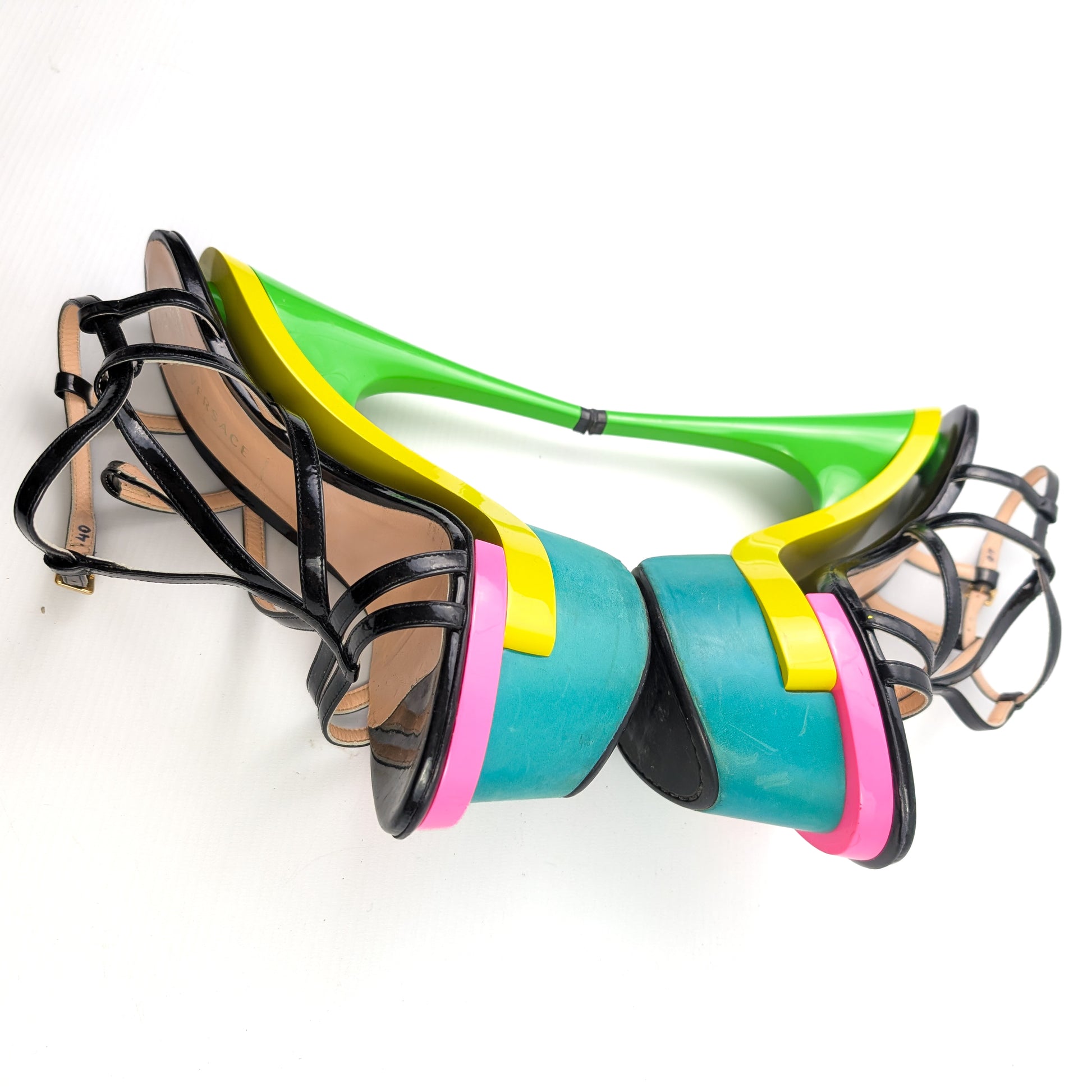 Item: Sandales Versace multicolores en cuir à plateforme.