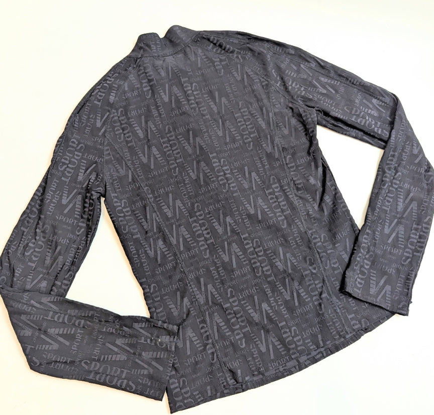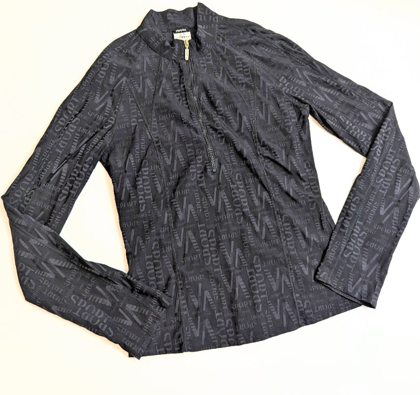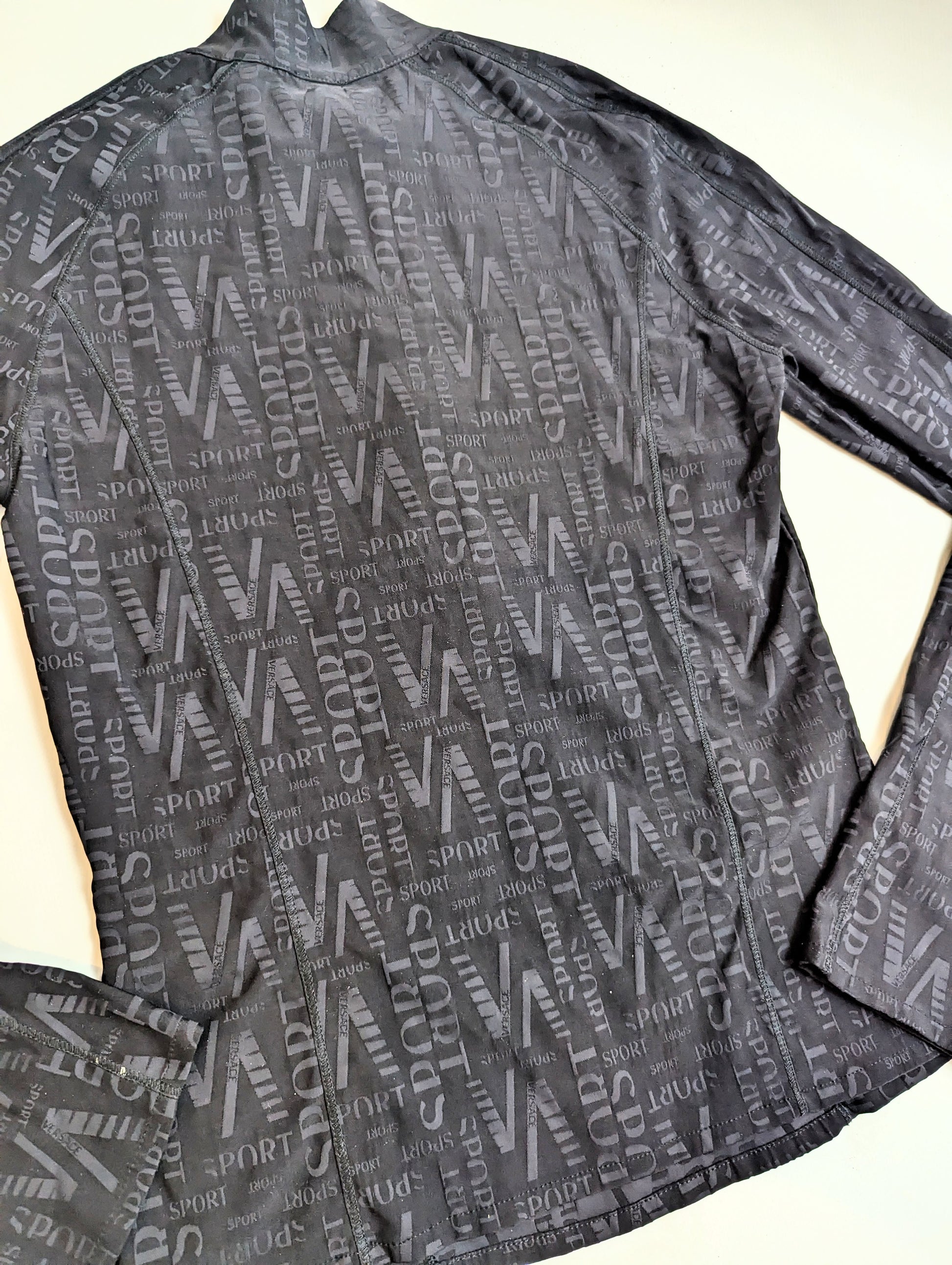 Item: Top à manche longue noir Versace style sport monogrammé en relief.