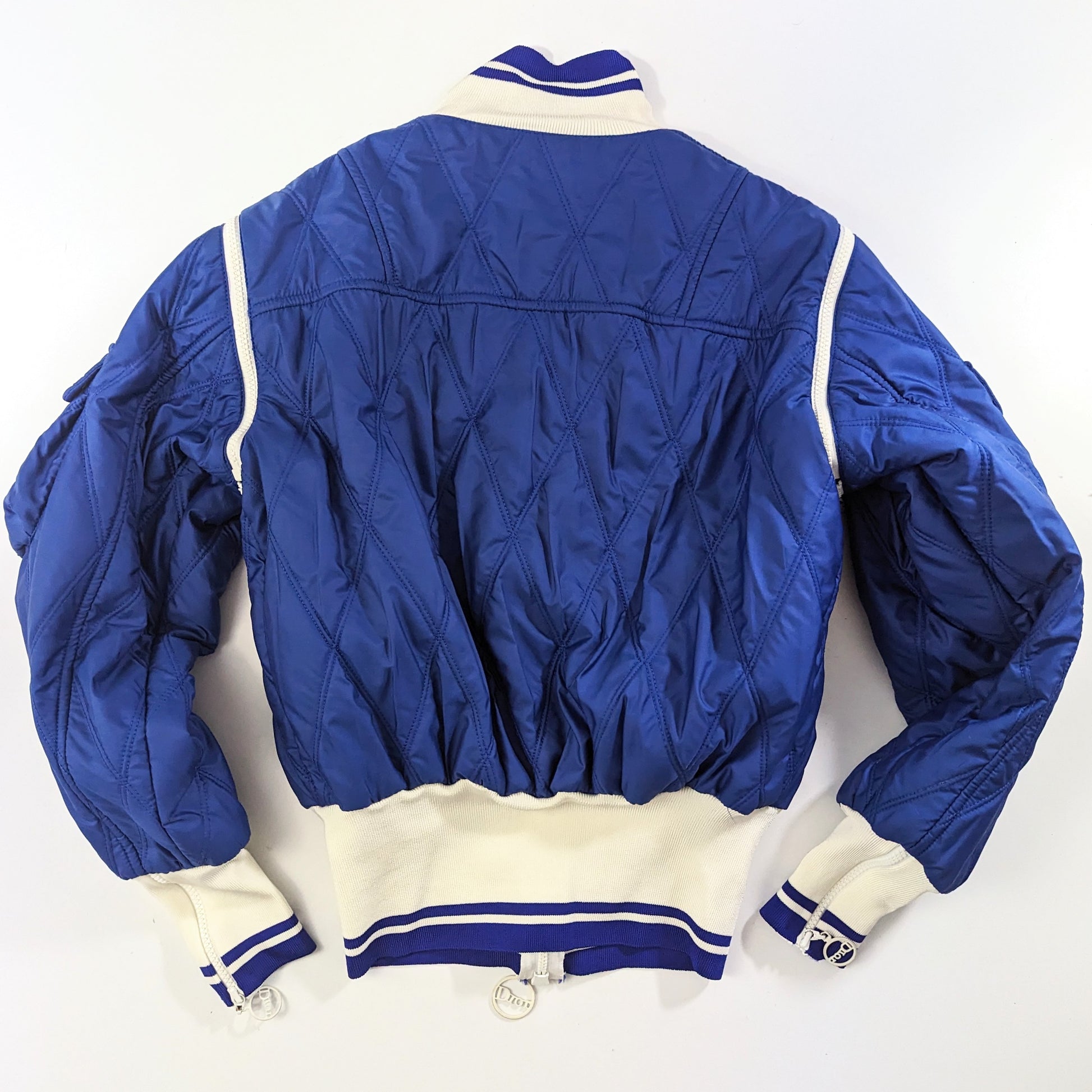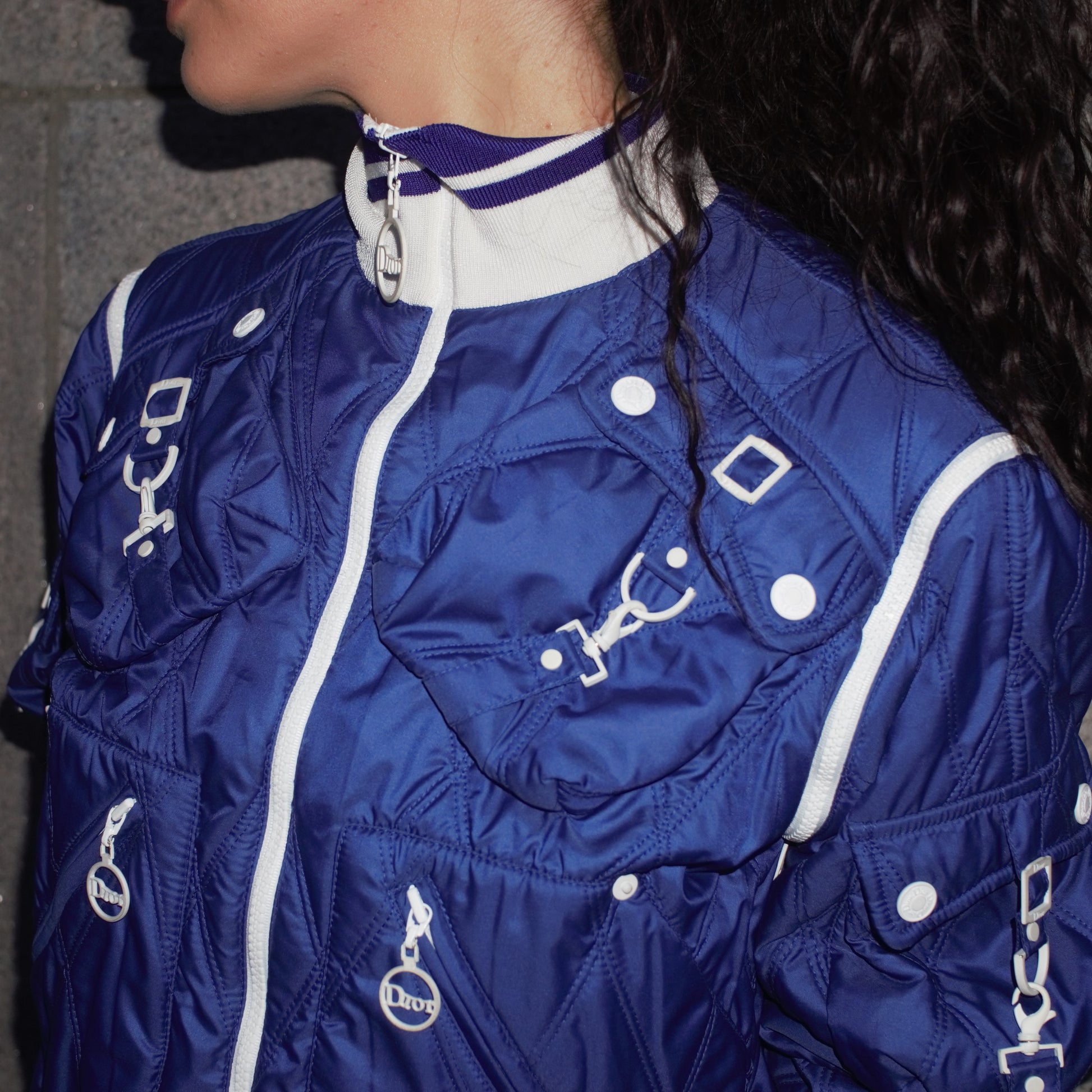 Item: veste bleu électrique et et ornement blanc. Inscription Dior sur les fermetures.