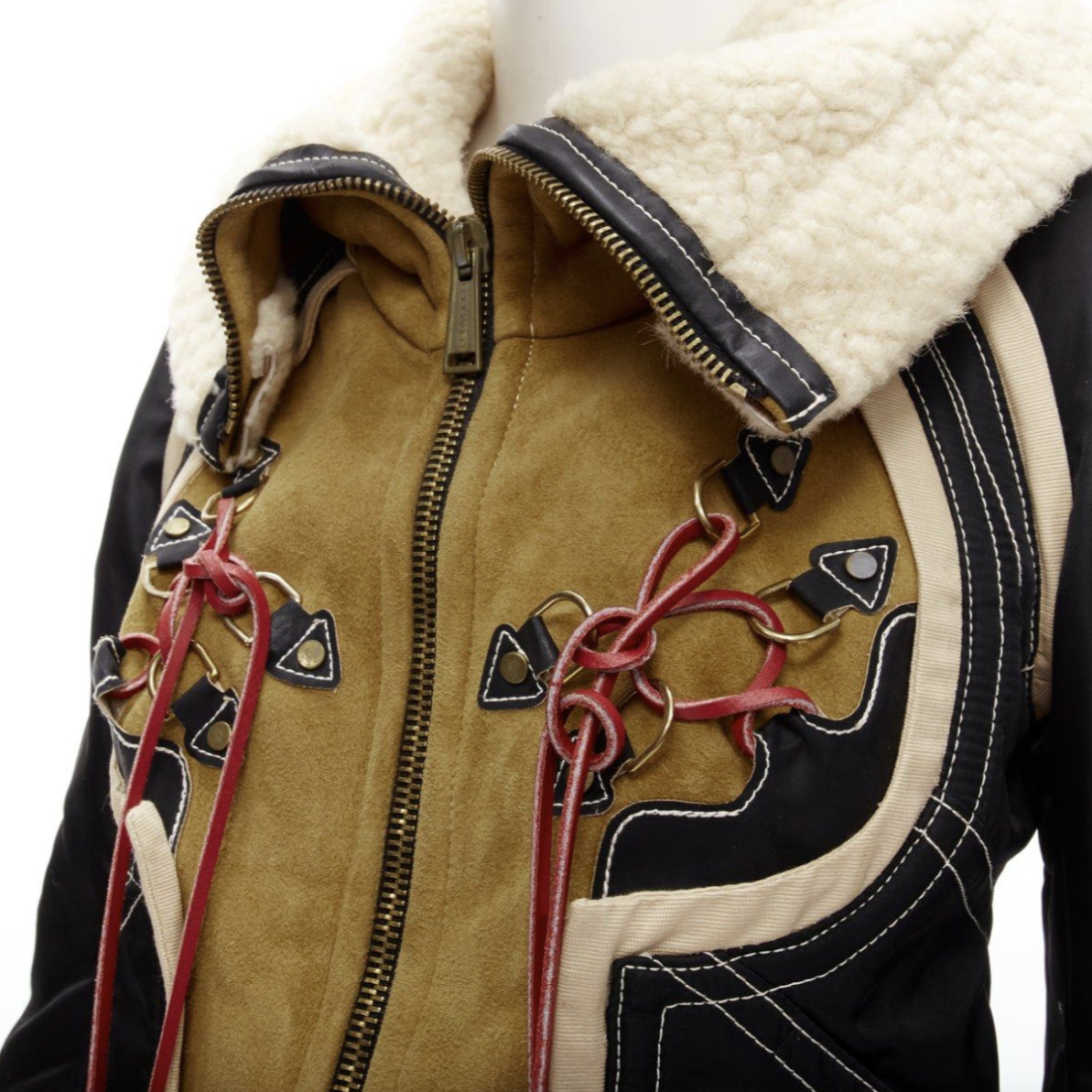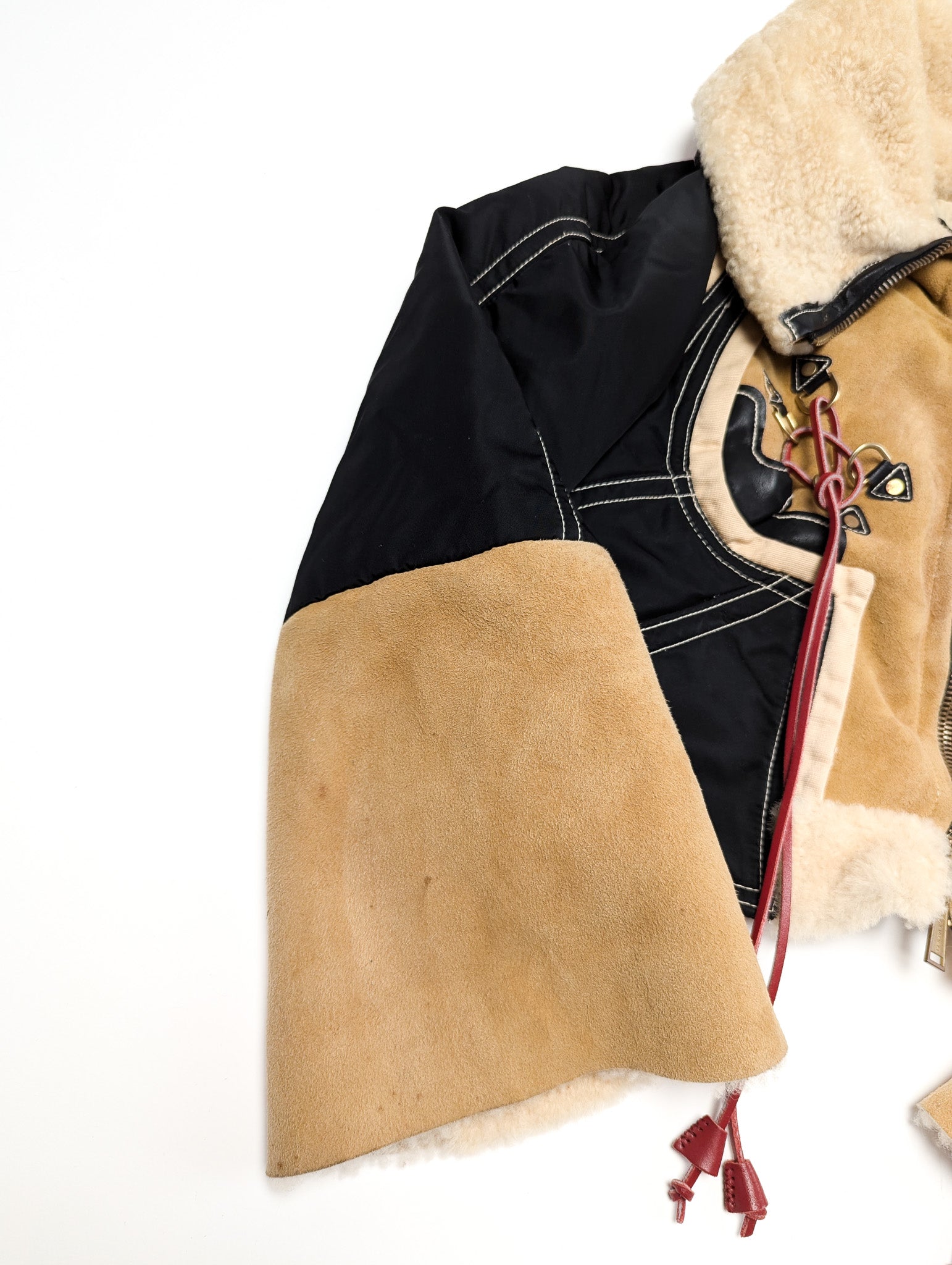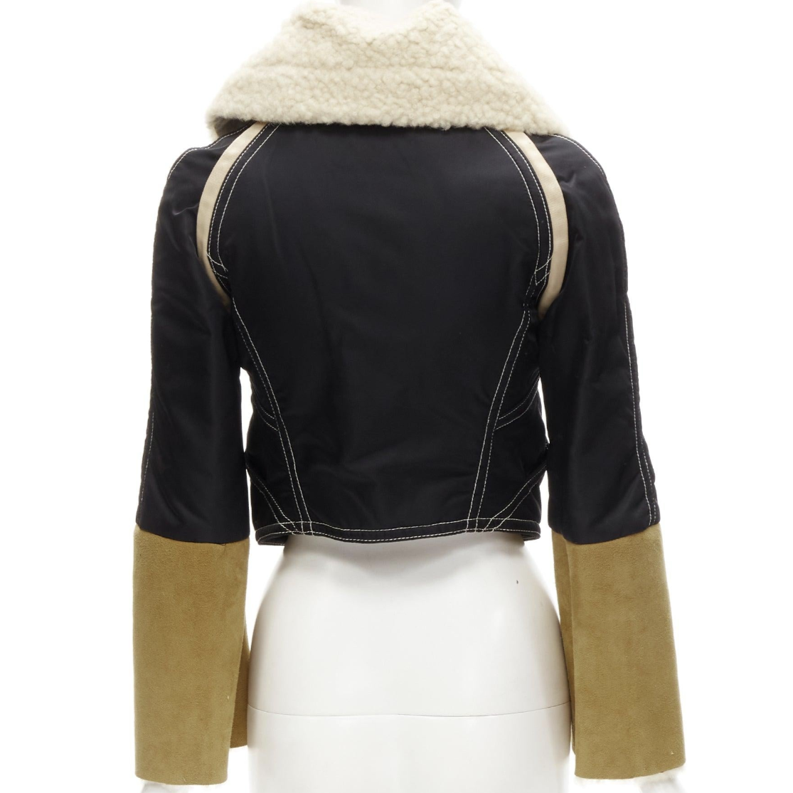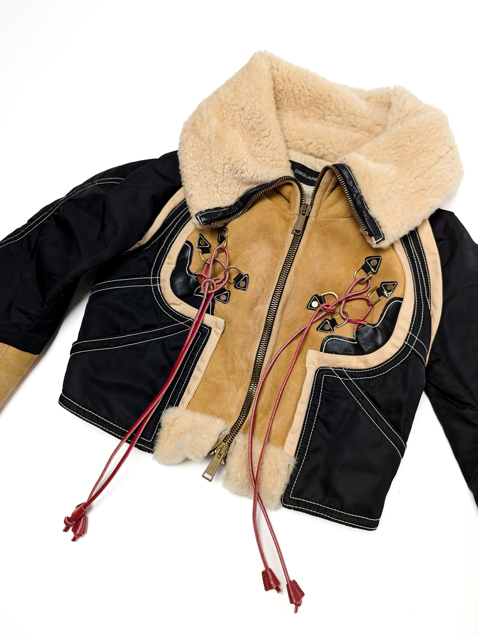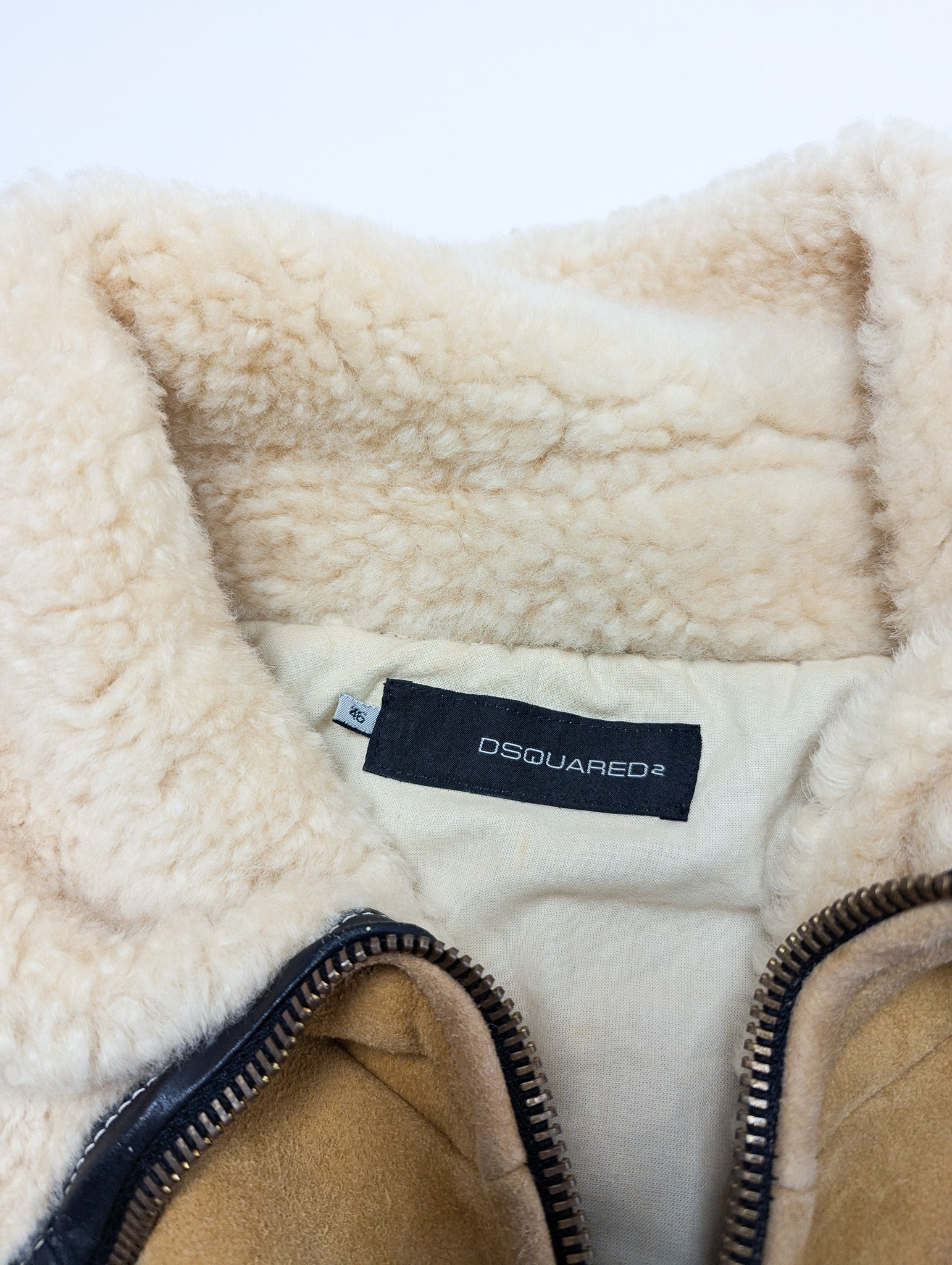 Item: Veste blouson aviateur en daim marron shearling DSQUARED2 Vintage. Veste en daim et nylon noir et doublée en shearling.